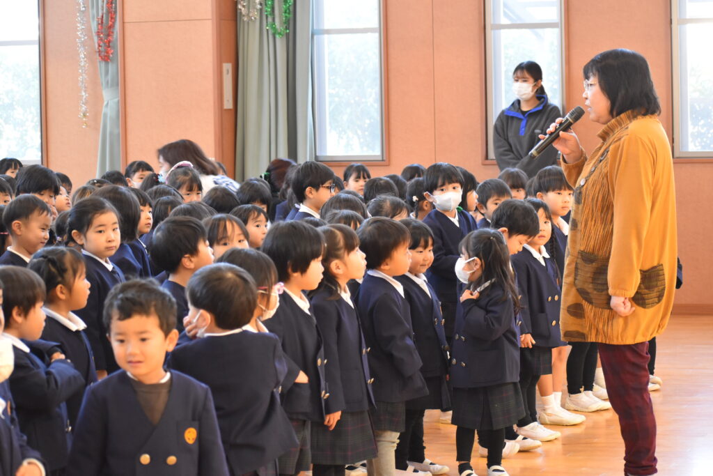 園長先生から冬休みの過ごし方や、年末の挨拶や、新年の挨拶を教えてもらいました。