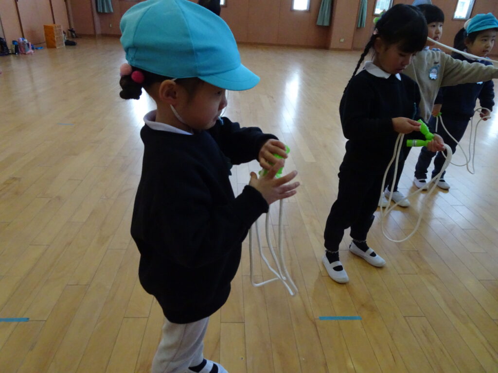 縄跳びの使い方、回し方、縄跳びの縛り方のコツも教えてもらい、みんなで楽しみました!