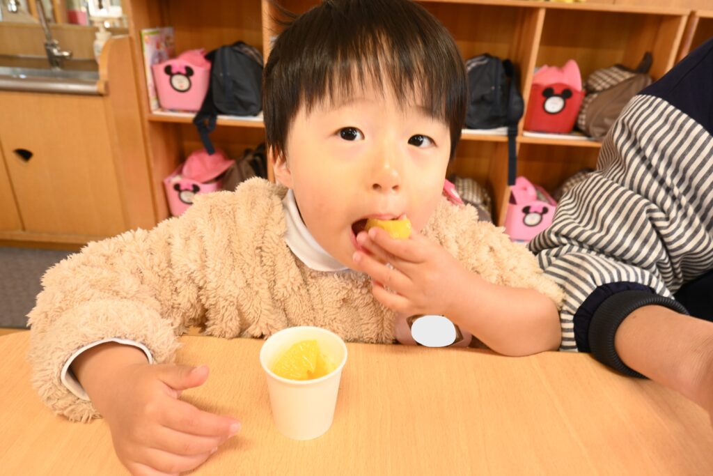 お外でたくさん体を動かして遊んだ後は、エネルギーチャージ!