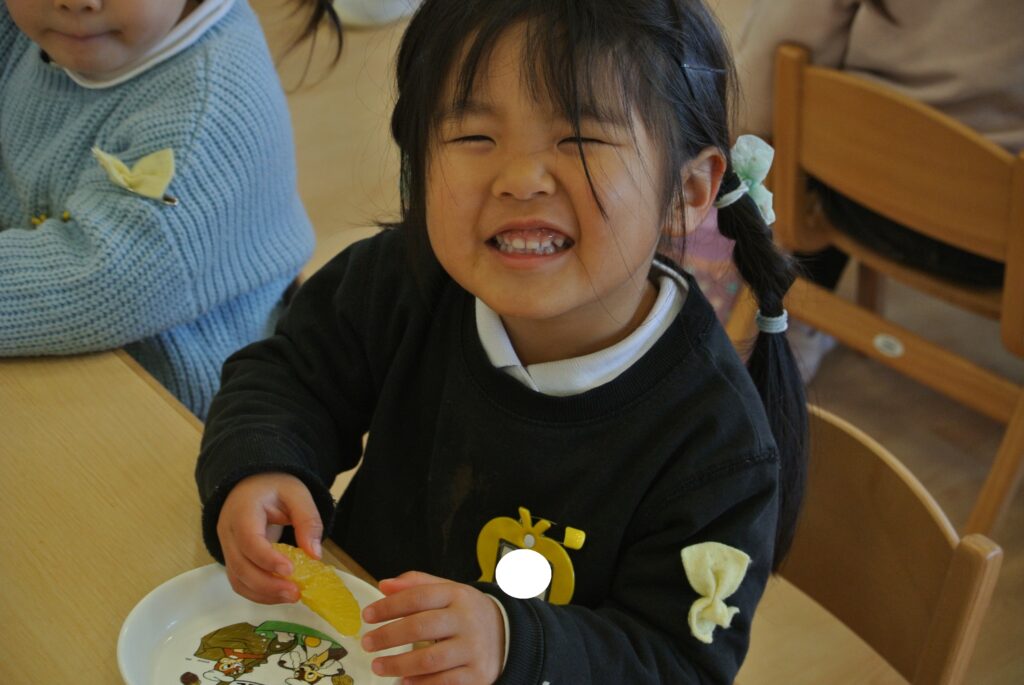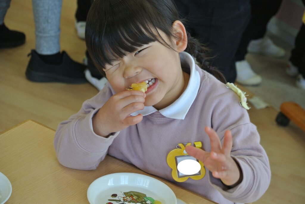 幼稚園の畑で採れた夏みかんを食べました。