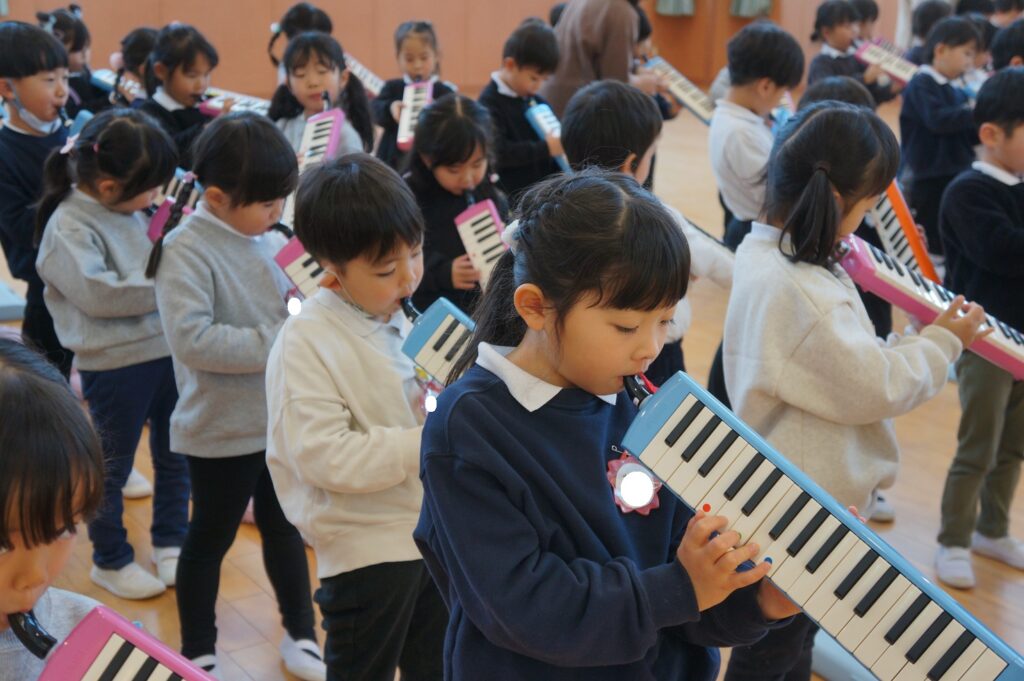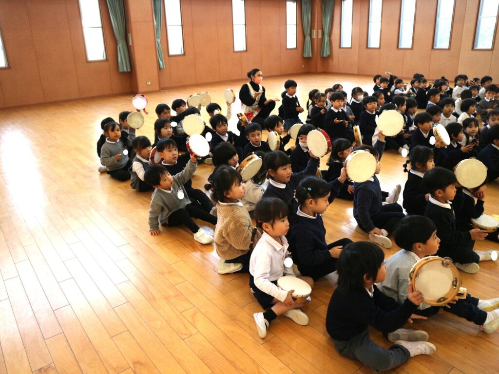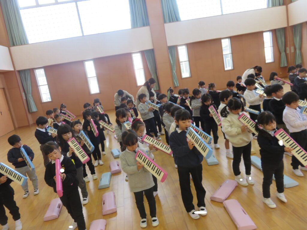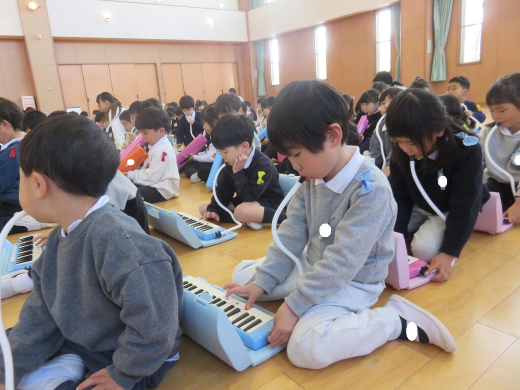 今日は今年度最後の器楽遊び。どの学年も音楽発表会に向けて角堀先生に指導していただきました。