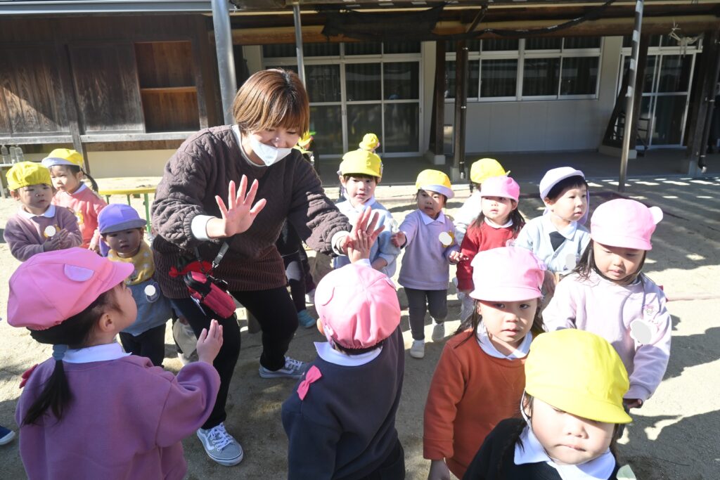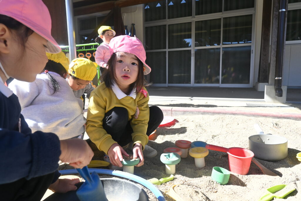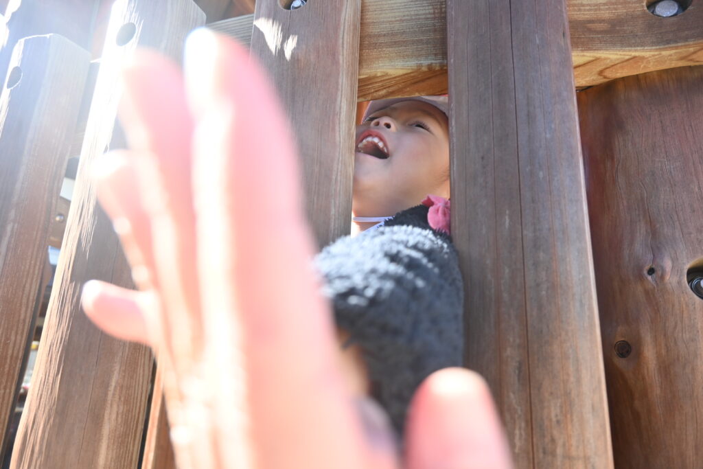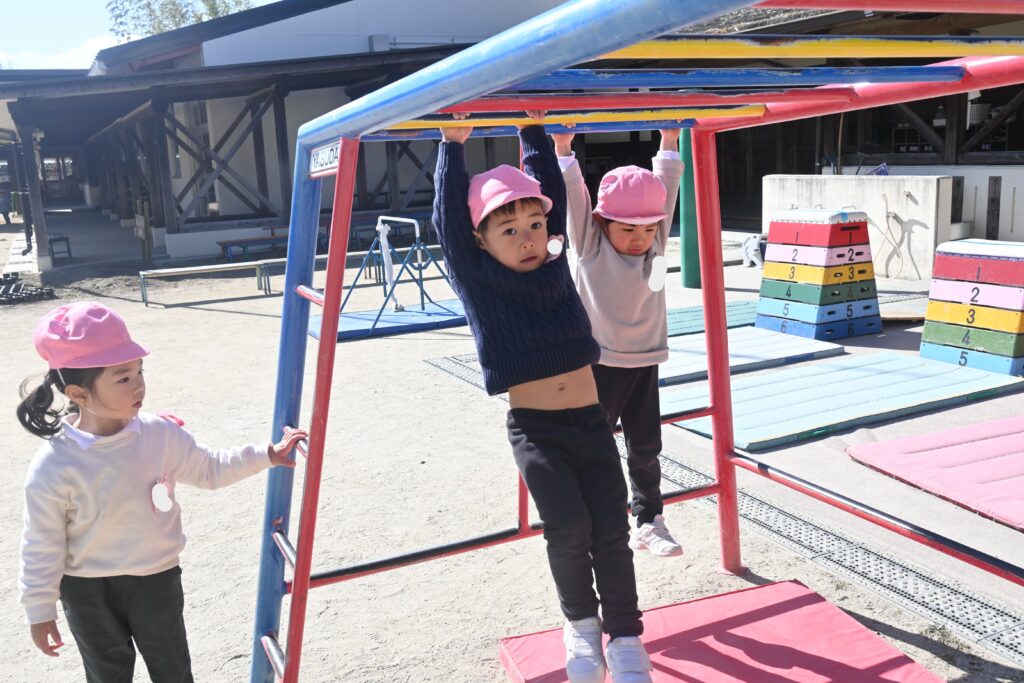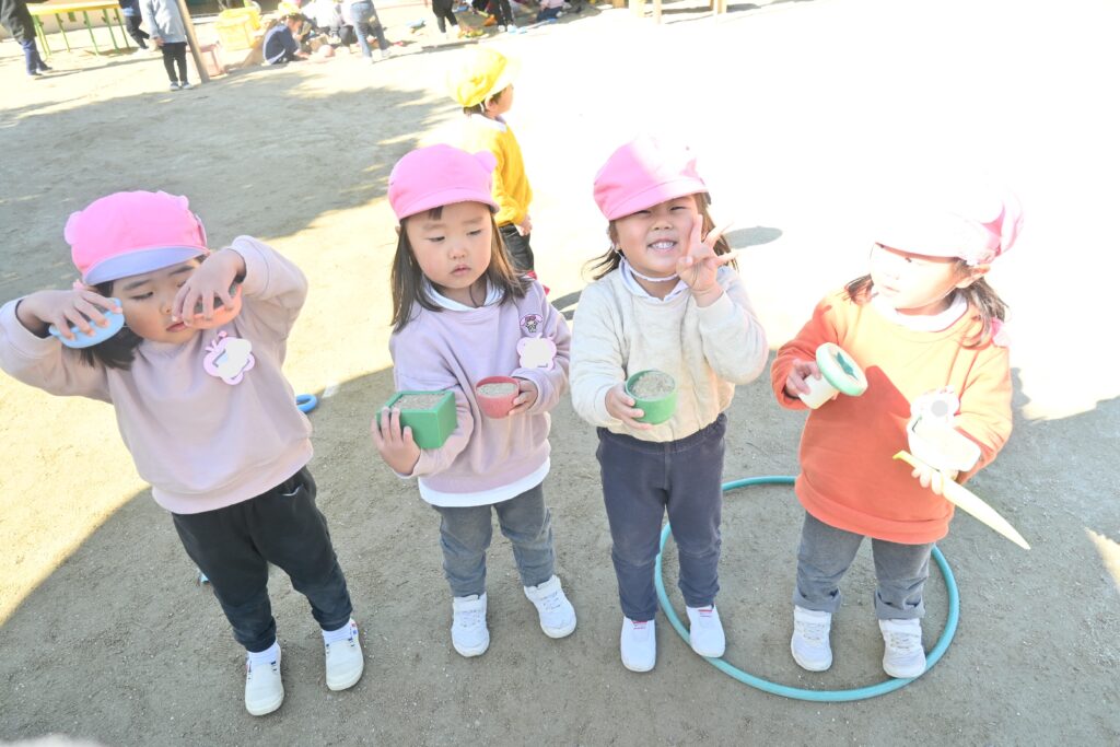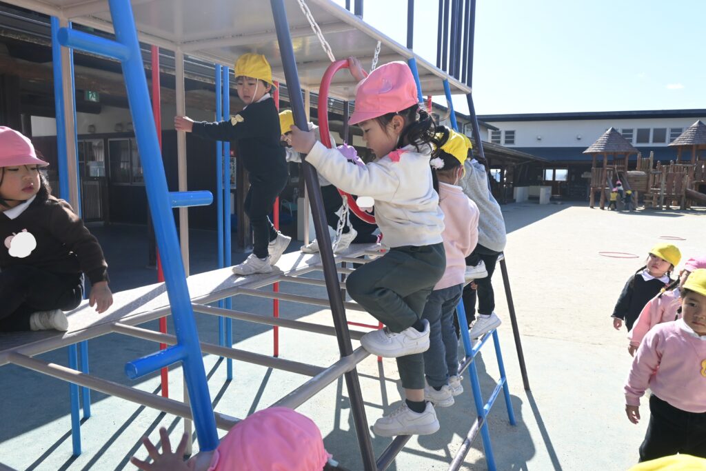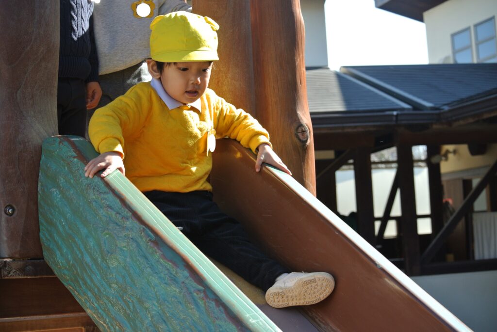 汽車バスに乗り込んで「出発進行!」と声をかけると、「今日は特別だよ」と運転手さんが「ポッポー」と汽笛を大サービス。「シュッシュッシュ」という音も鳴らして走ってくれました。汽車のようなかっこいいバスに乗って、第二早蕨幼稚園の遊具で遊んだミニミニ遠足。キラキラ輝く日差しに負けないくらいかっこいい汽車バスとピカピカ笑顔の子どもたちでした。楽しかったね。