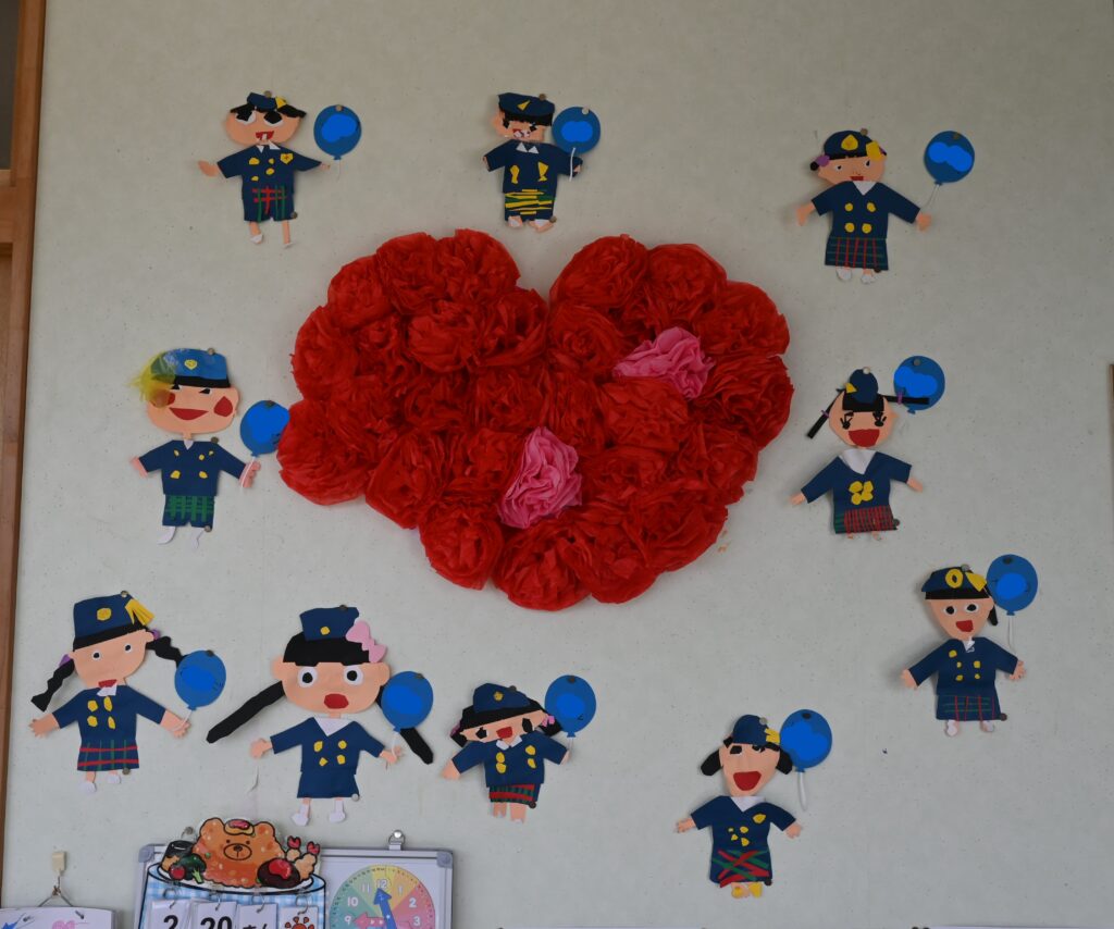 『かわいいね』『みんなのこと好きだからハートにしたんでしょ😊』と嬉しそうに壁面を見ていました。大学のお姉さん、ありがとうございました!