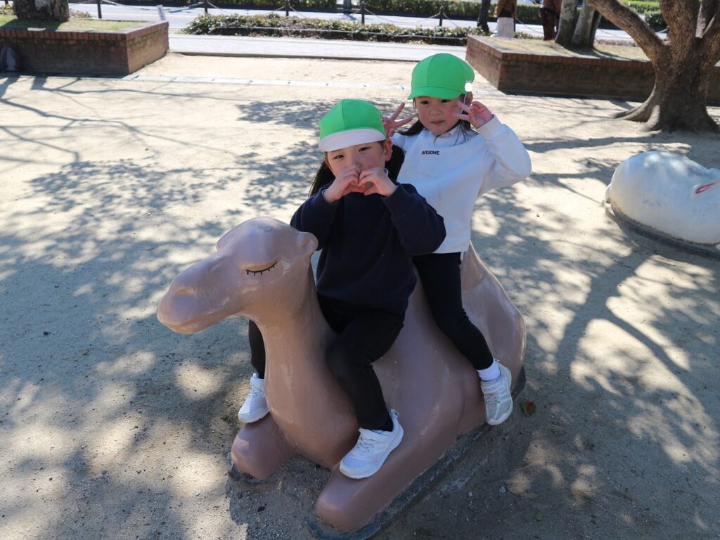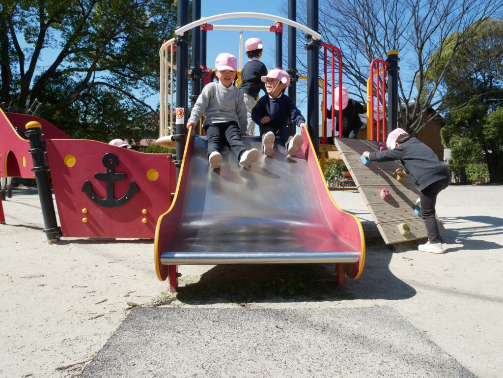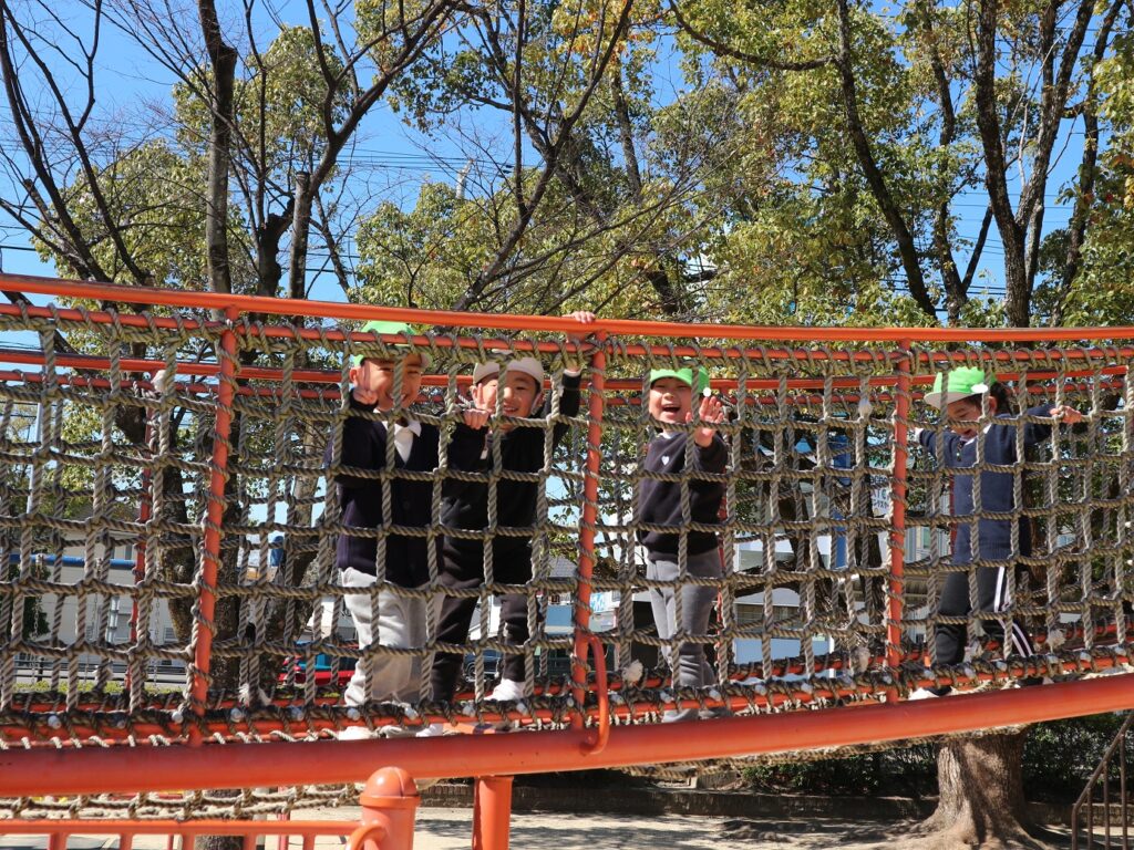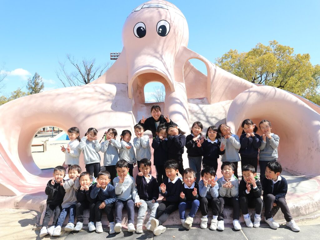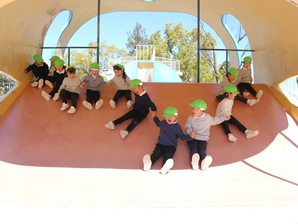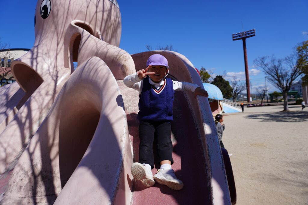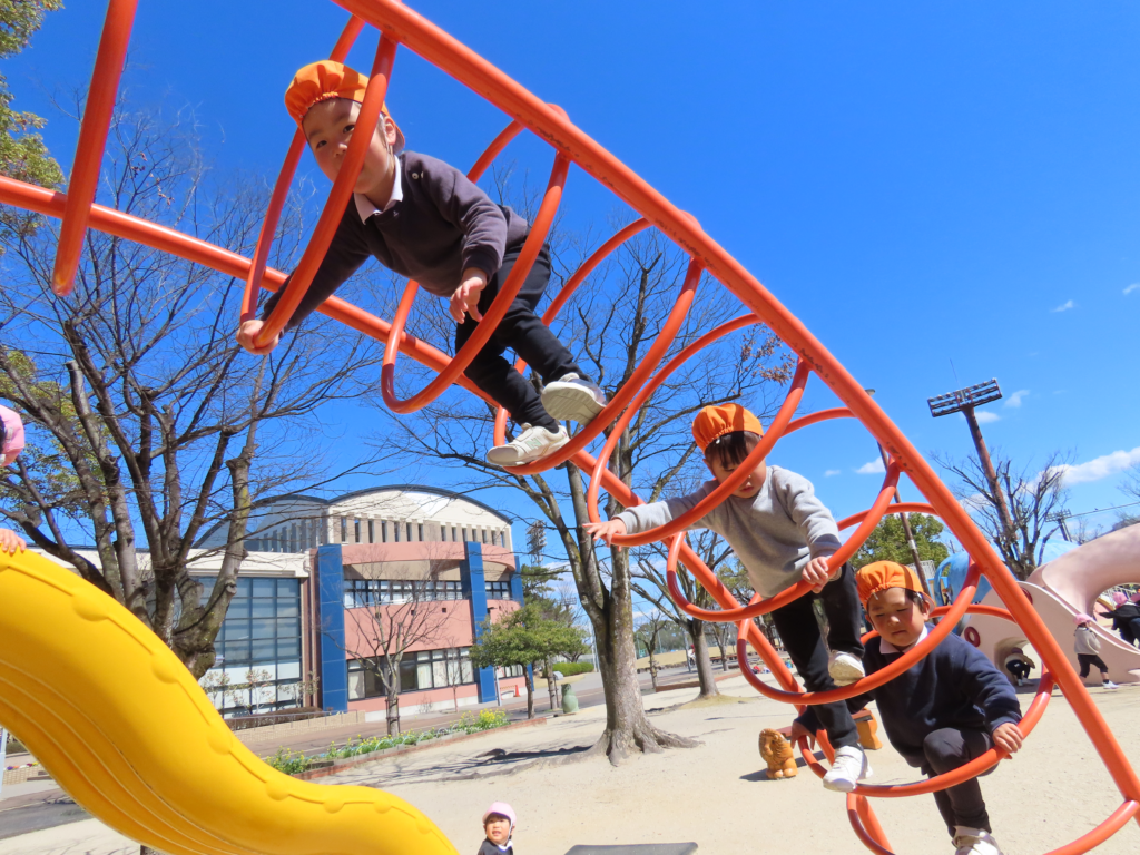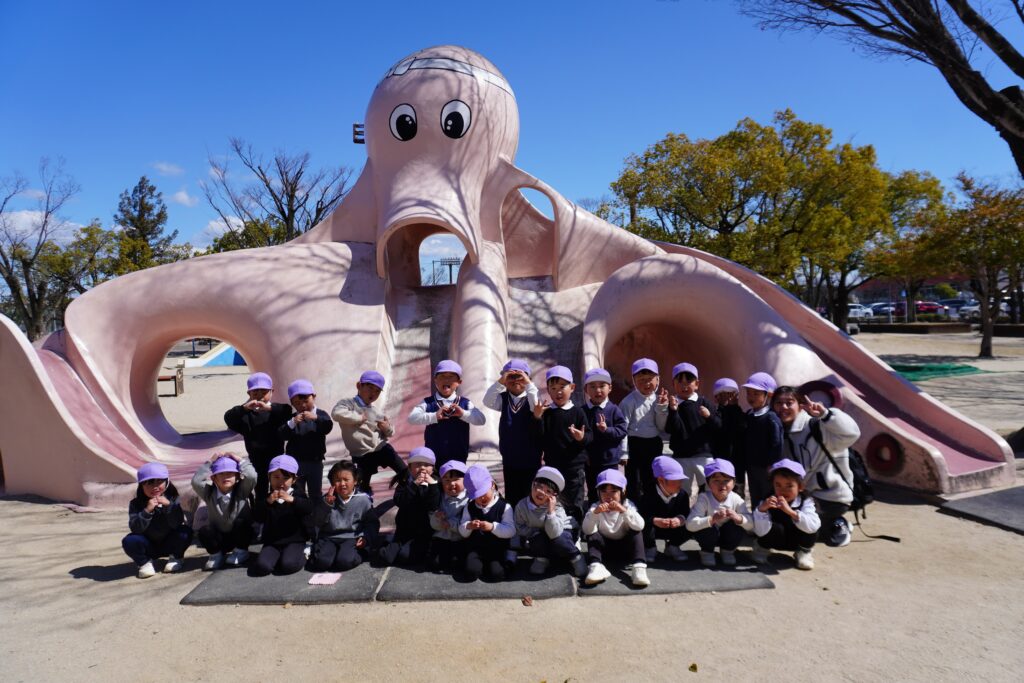 今日は年少組が安城総合運動公園に行きました。タコやクジラのすべり台をしたり砂場で遊んだりと、大好きな友達や先生と一緒にたくさん遊びました!