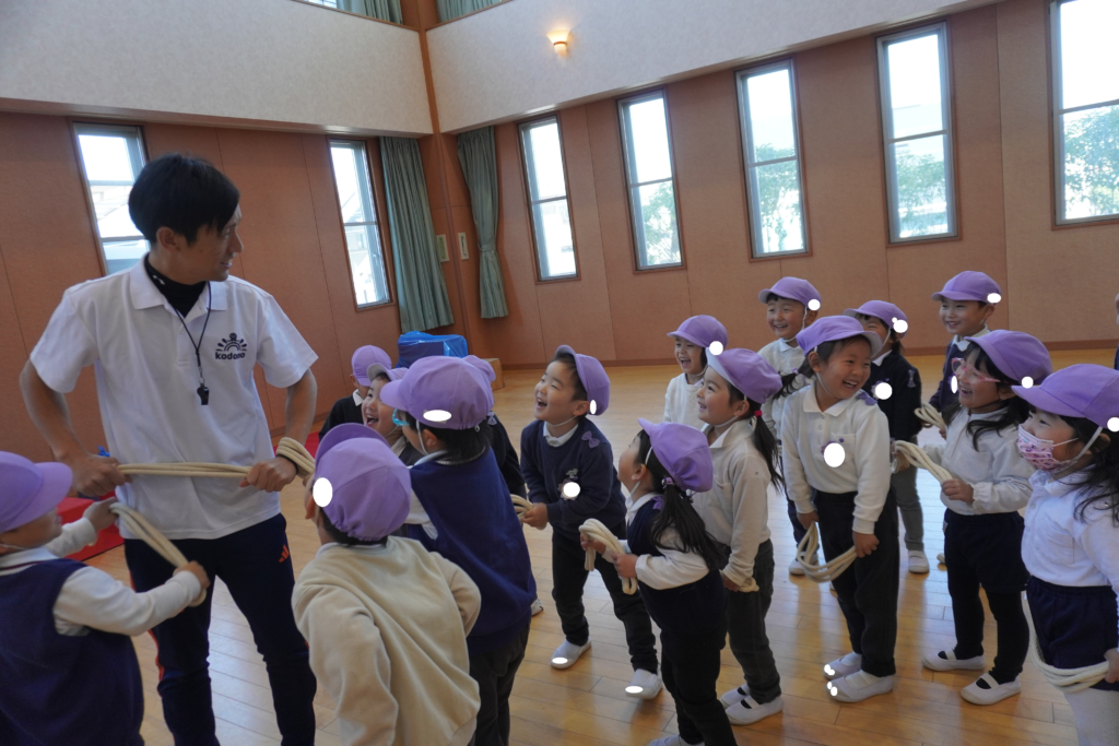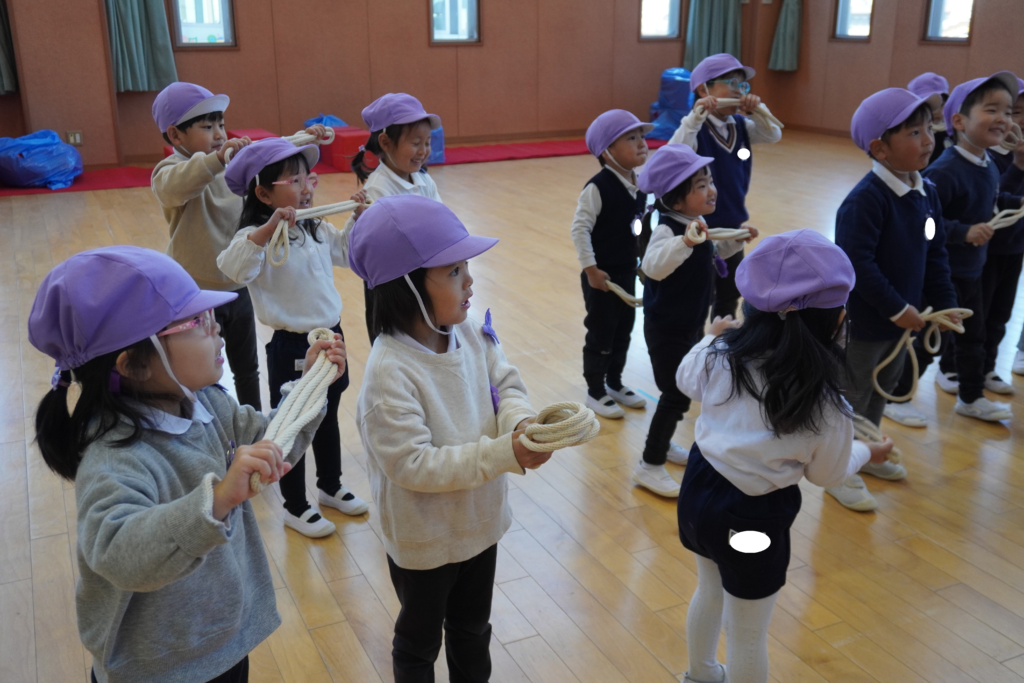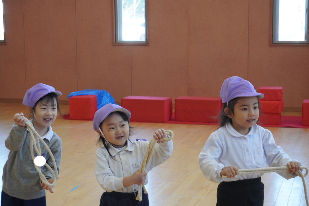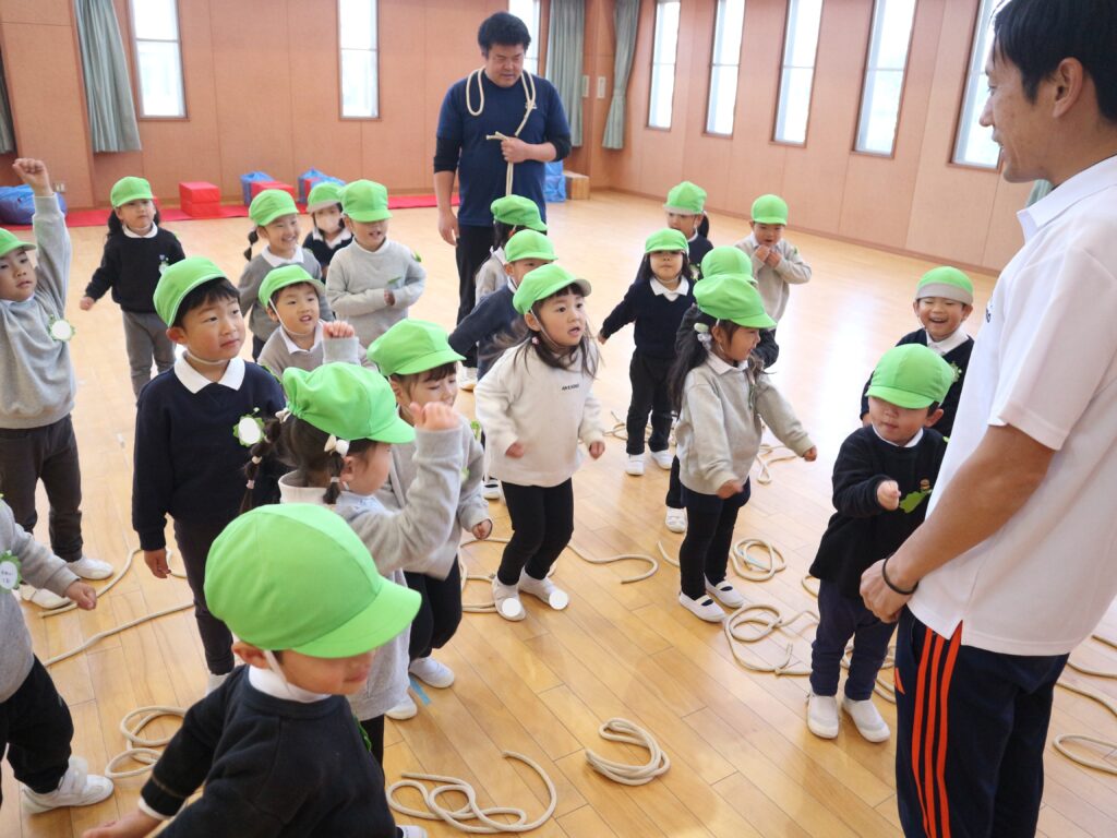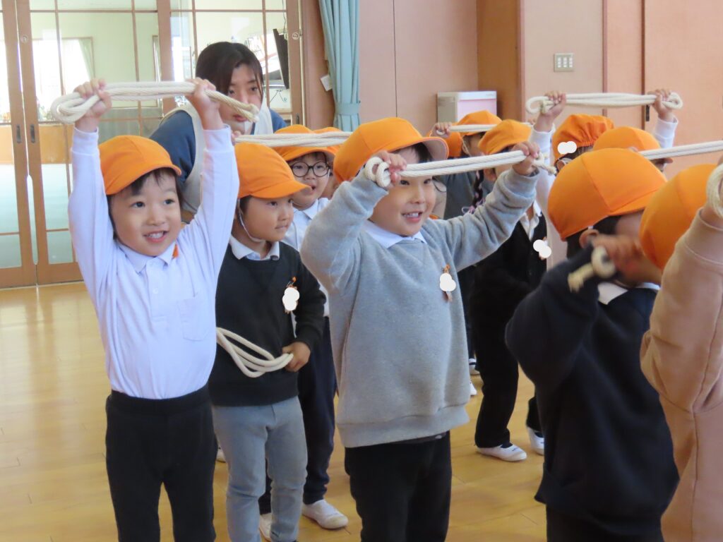 初めて見る短縄に子どもたちも「何をするの?」と興味深々・・・。