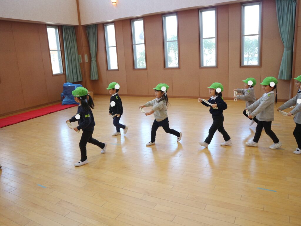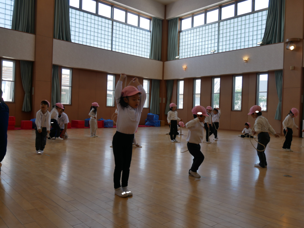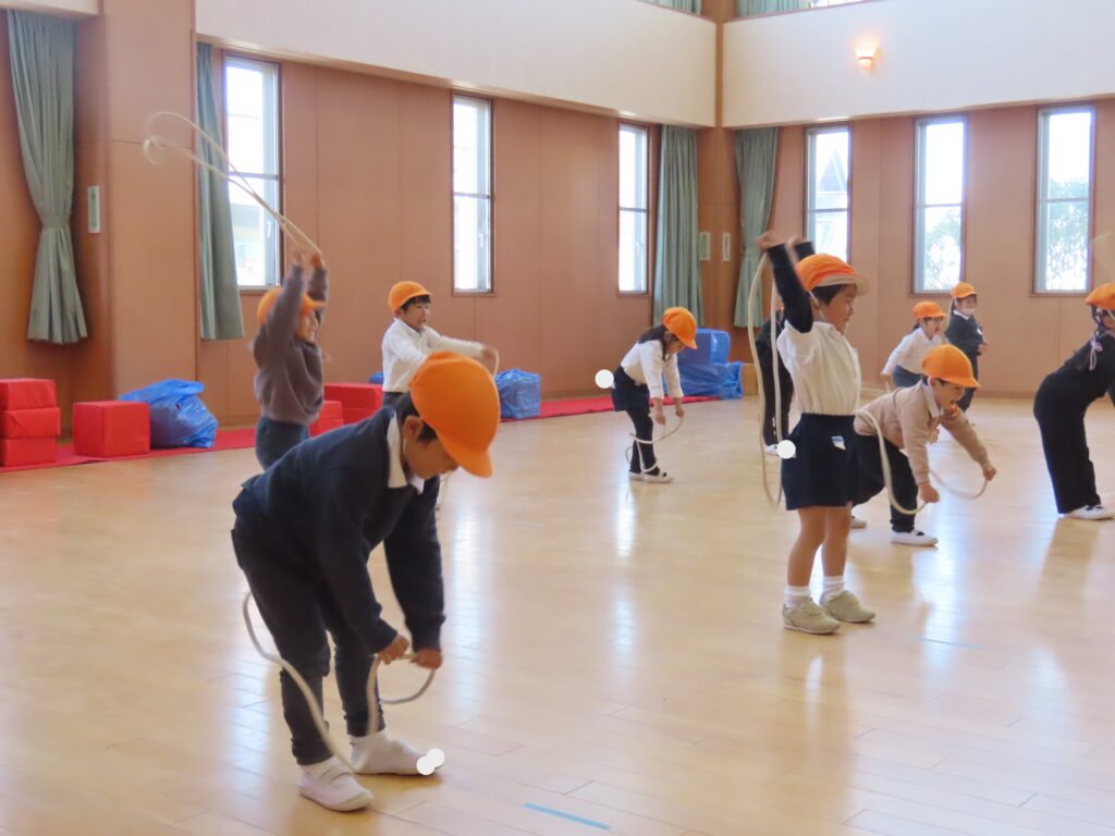 今日は、短縄を使った運動をしました。