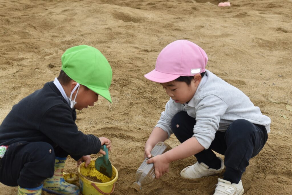 こっそり水を使って砂場遊び!!