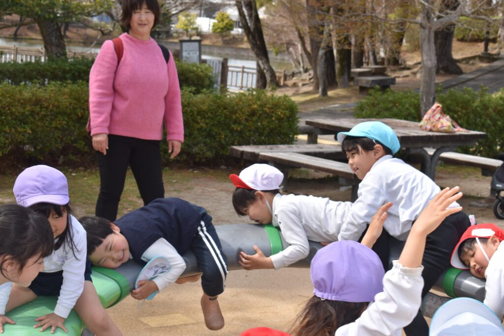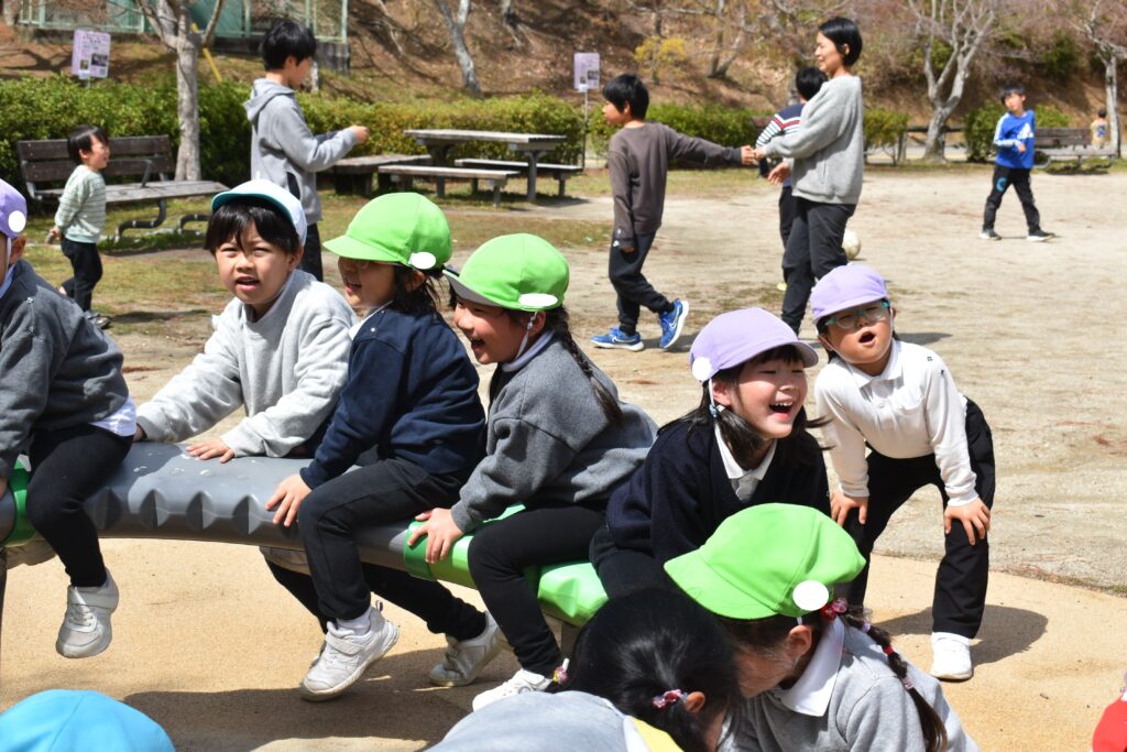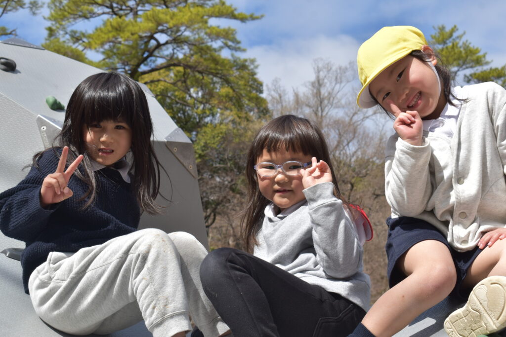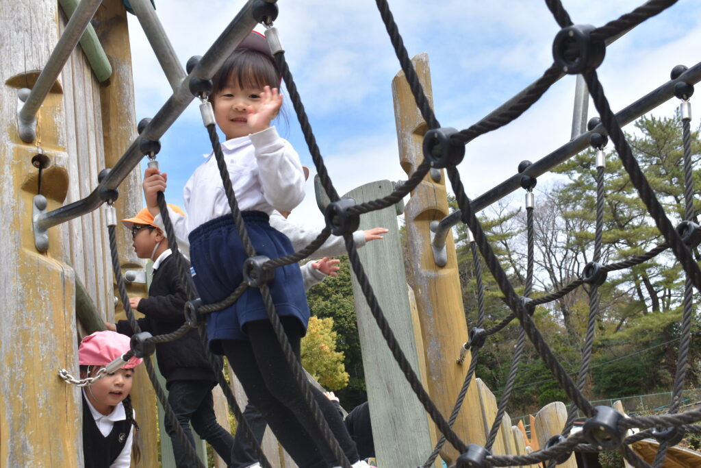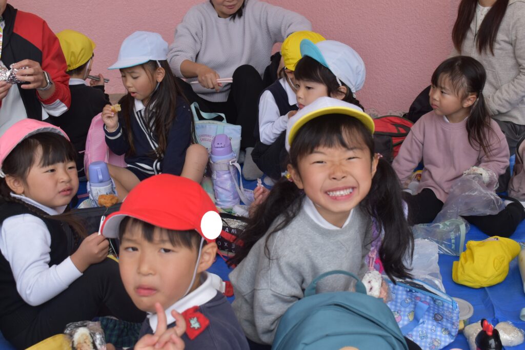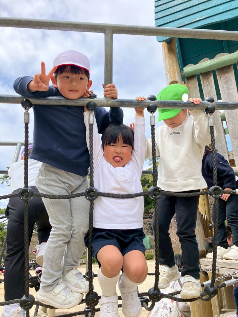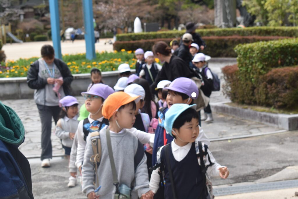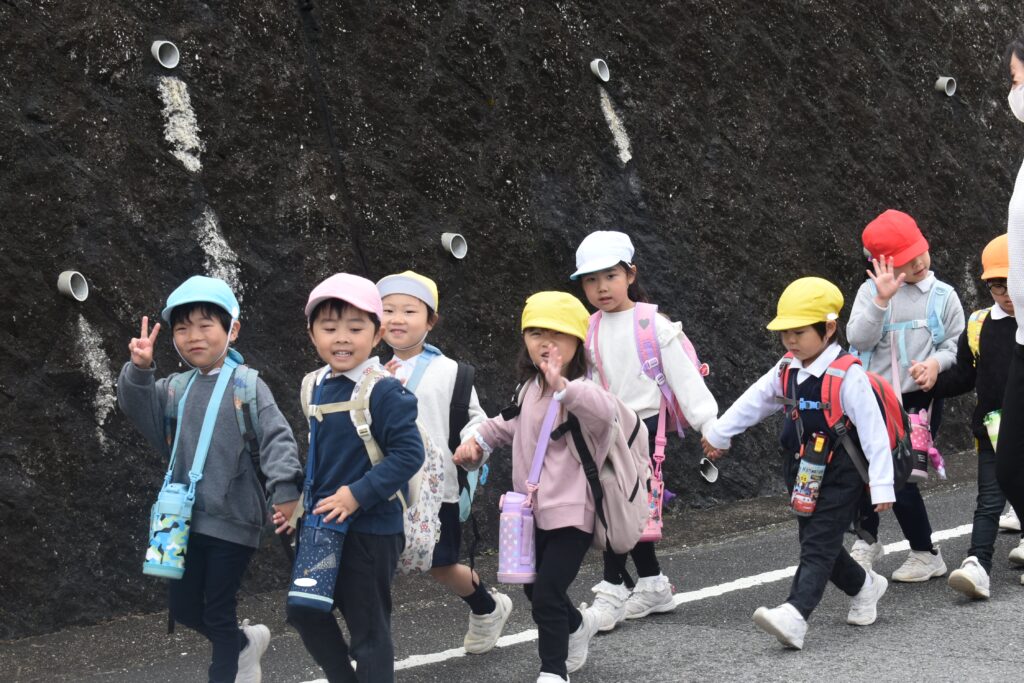 年中と年少のペアでわいわい歩いているうちに、太陽も出てきてみんな大喜びでした!