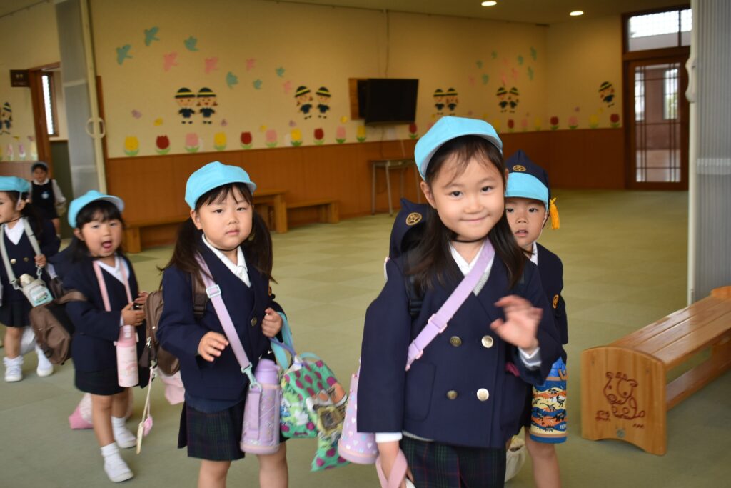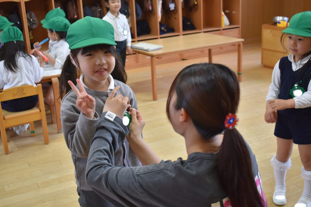 遊びの時間になると、先生に新しいカラー帽子や名札を嬉しそうに見せてくれる子がたくさんいました!
