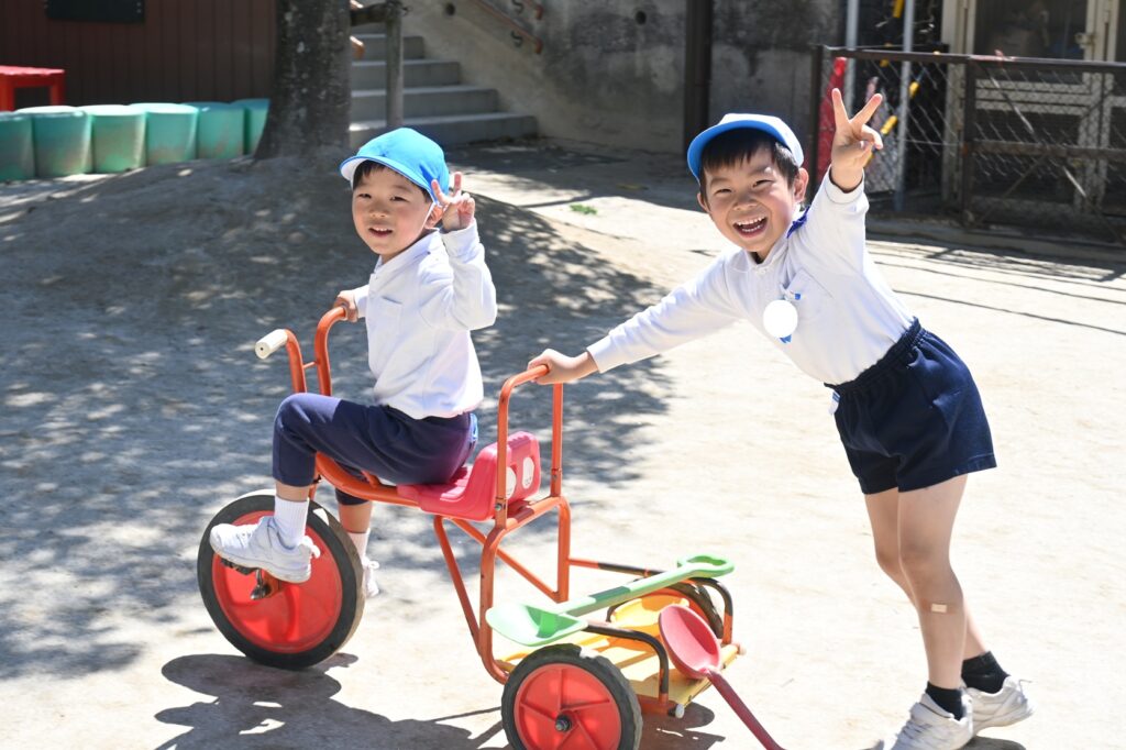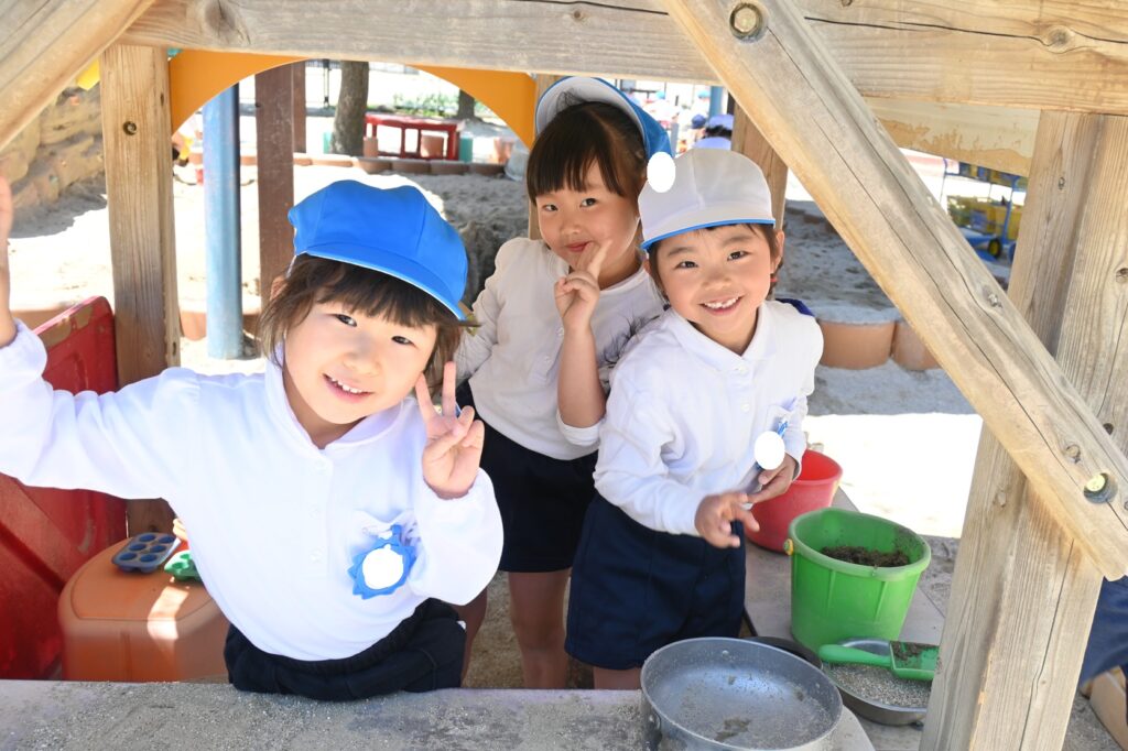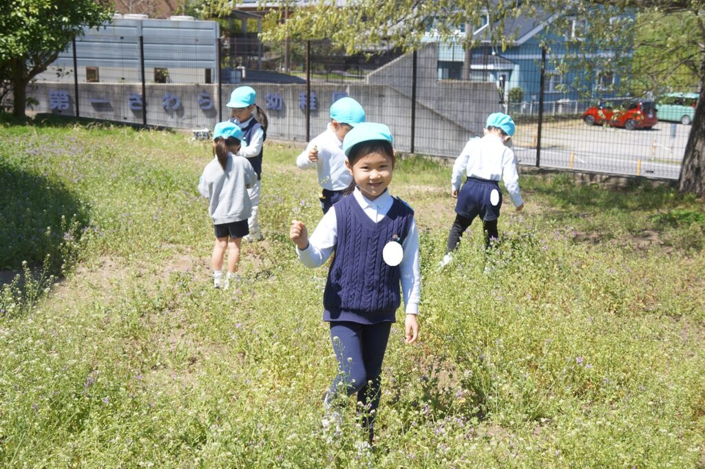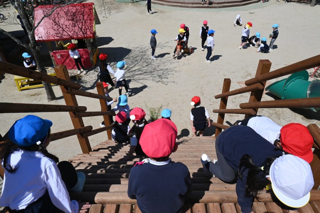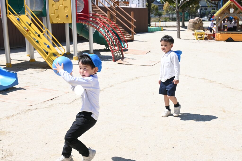 天気がよく暖かかったので今日はたくさんのお友達が園庭や畑に出て遊んでいました。