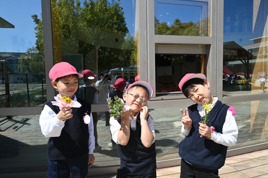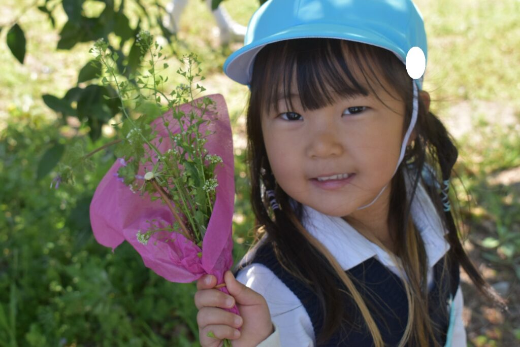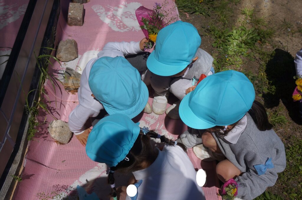 畑には綺麗なお花がいっぱい咲いていて先生と一緒にラッピングをしたり職員室の先生にプレゼントをしたりして遊んでいました♡