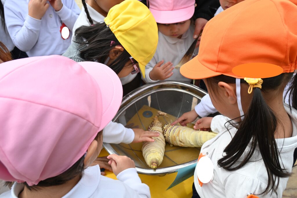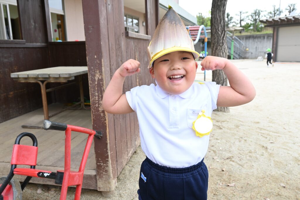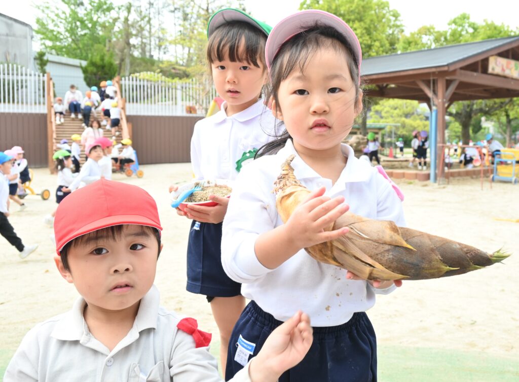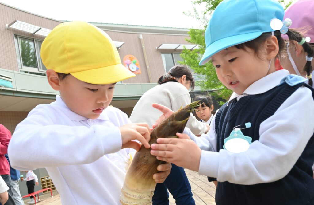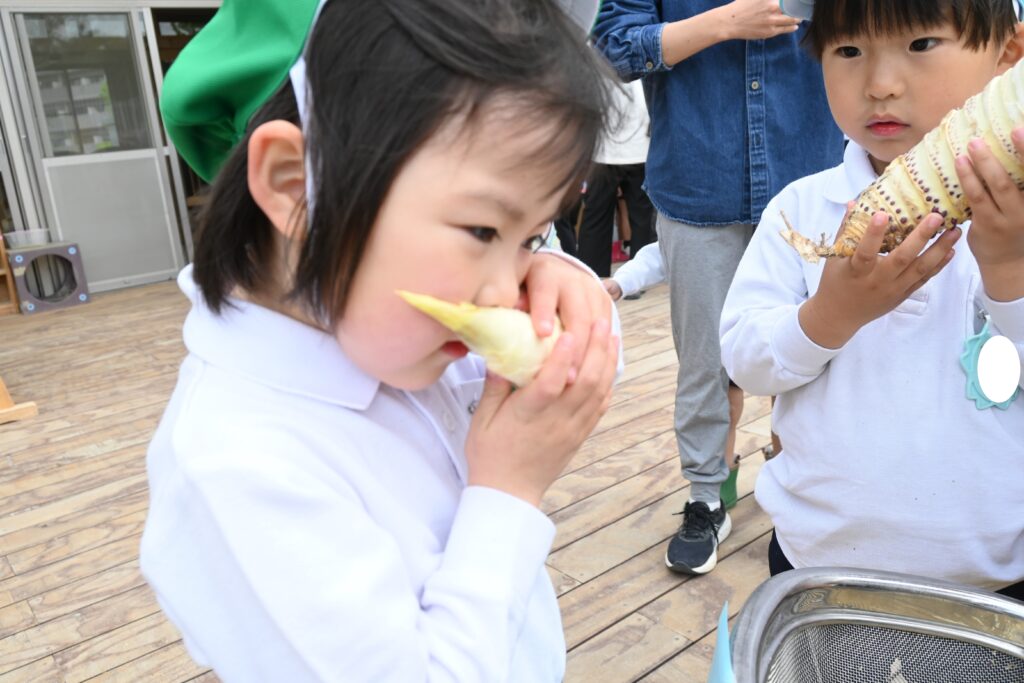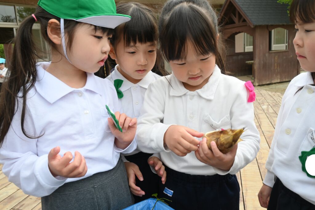 たけのこを頂いたのでみんなで皮を剥いてみました!茶色の皮をどんどん剥いていくと、白い部分がでてきて。。。どこまで剥いたらいいの??と先生に聞きながらむきました!!