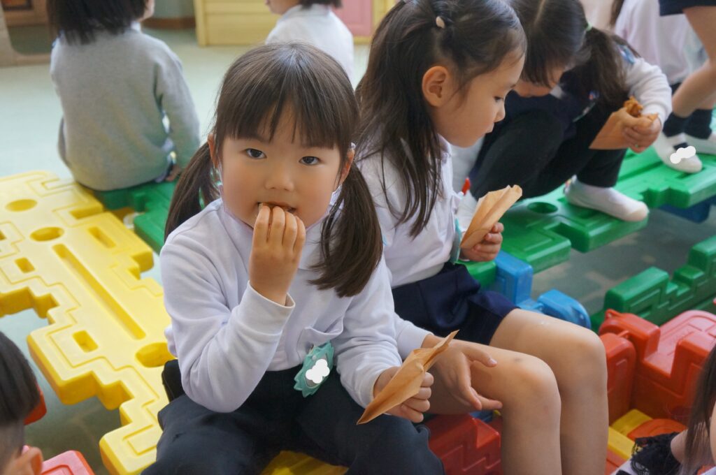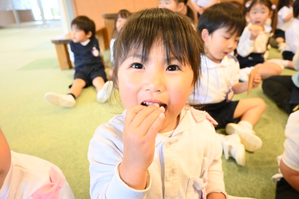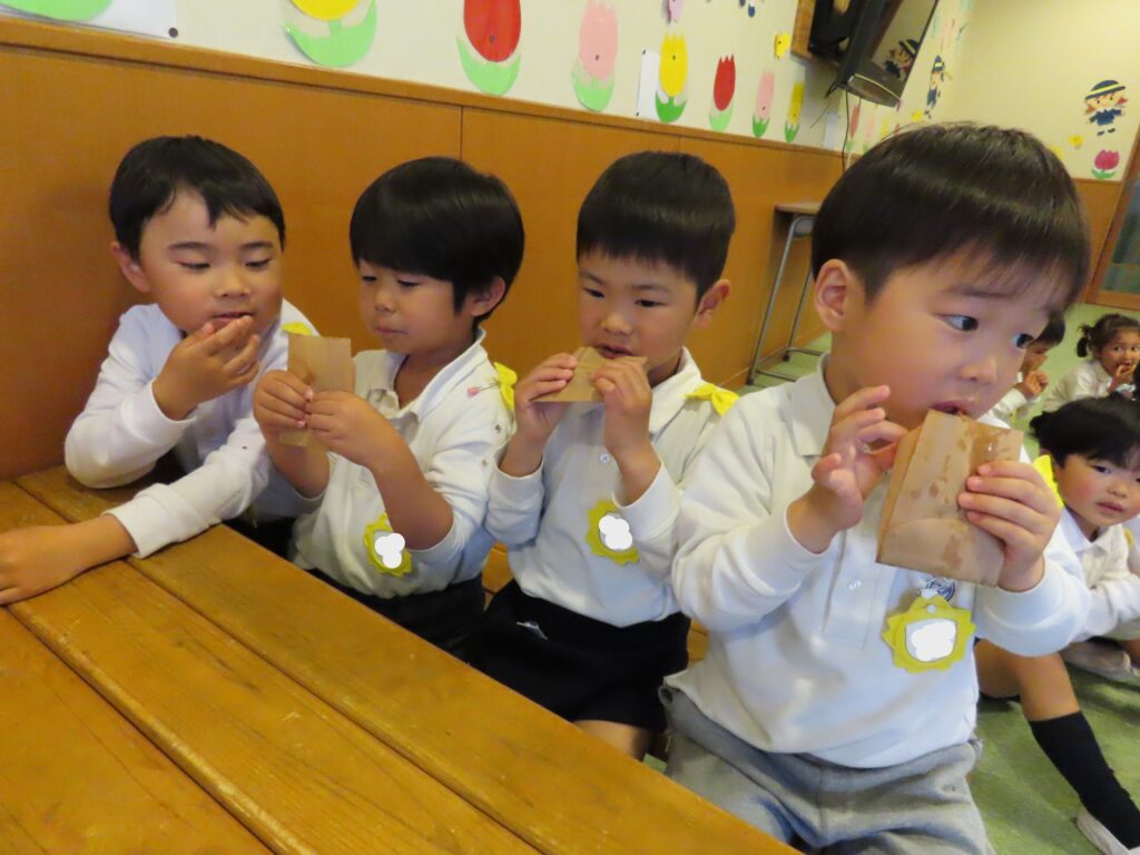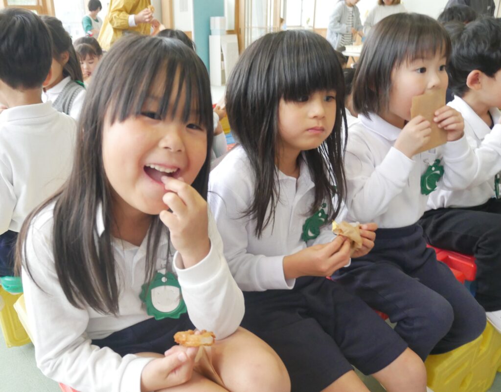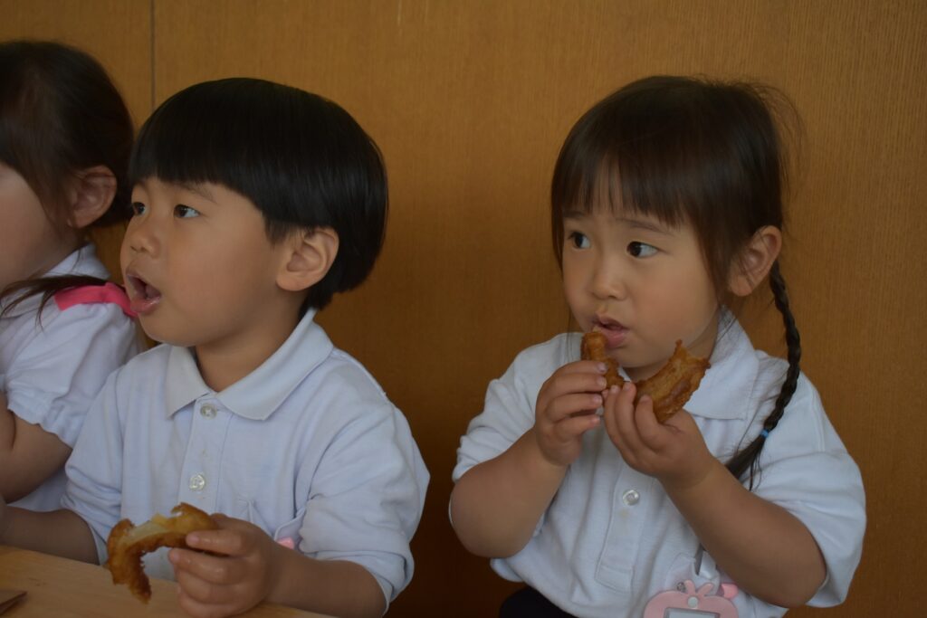「サクサクするよ~♪」「甘くて美味しいね♡」『おかわりある?」と友だちと話しながら楽しく食べました。