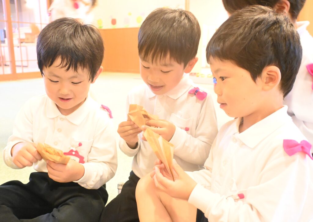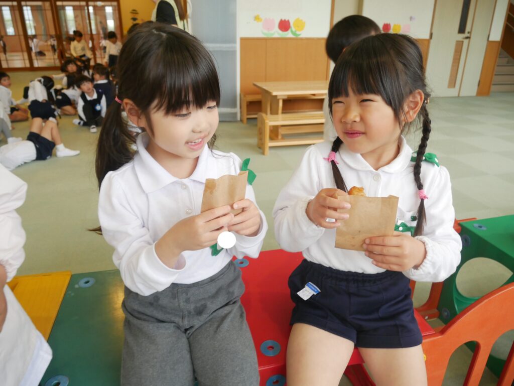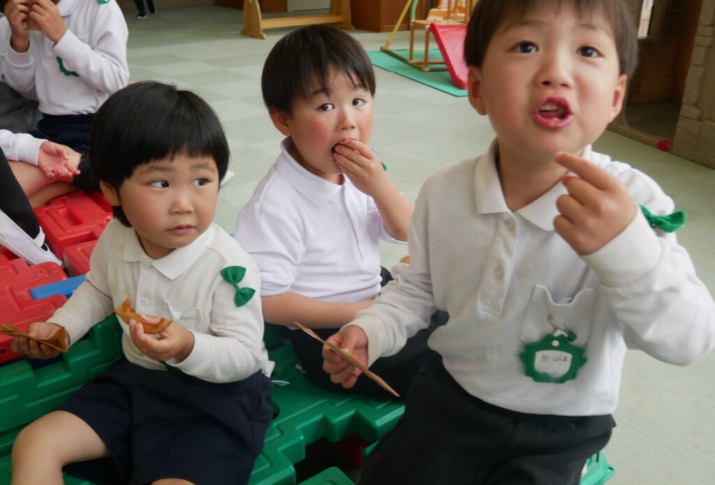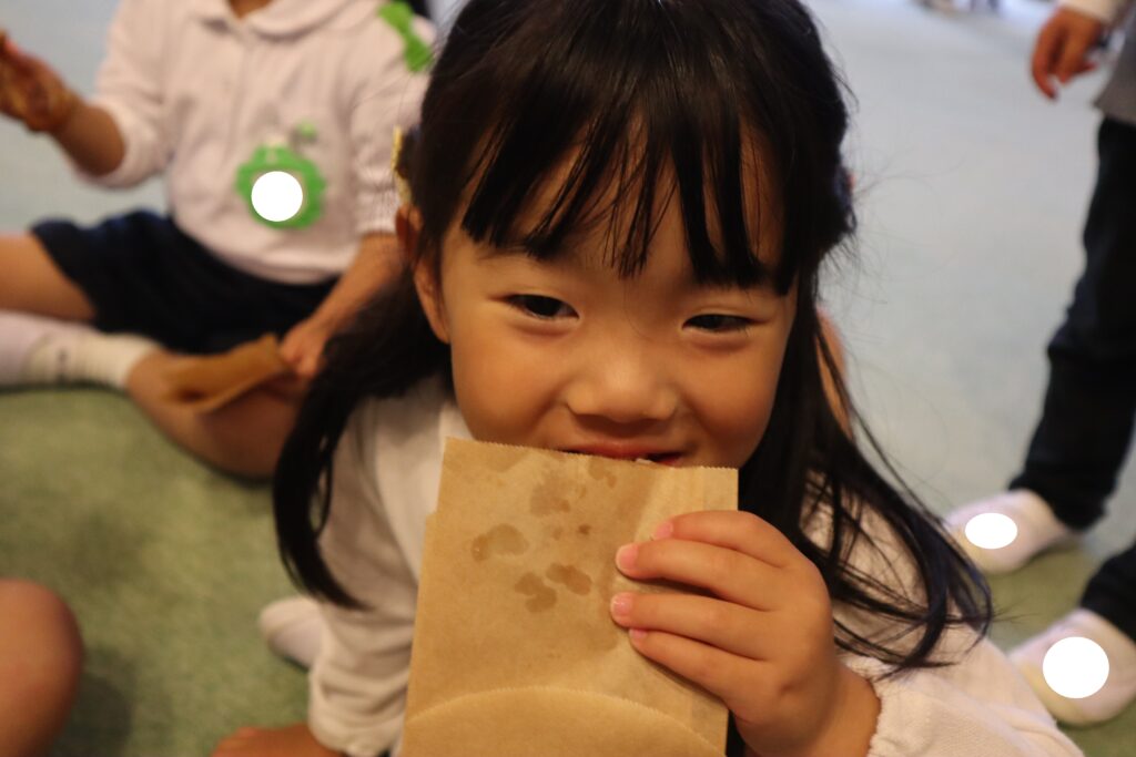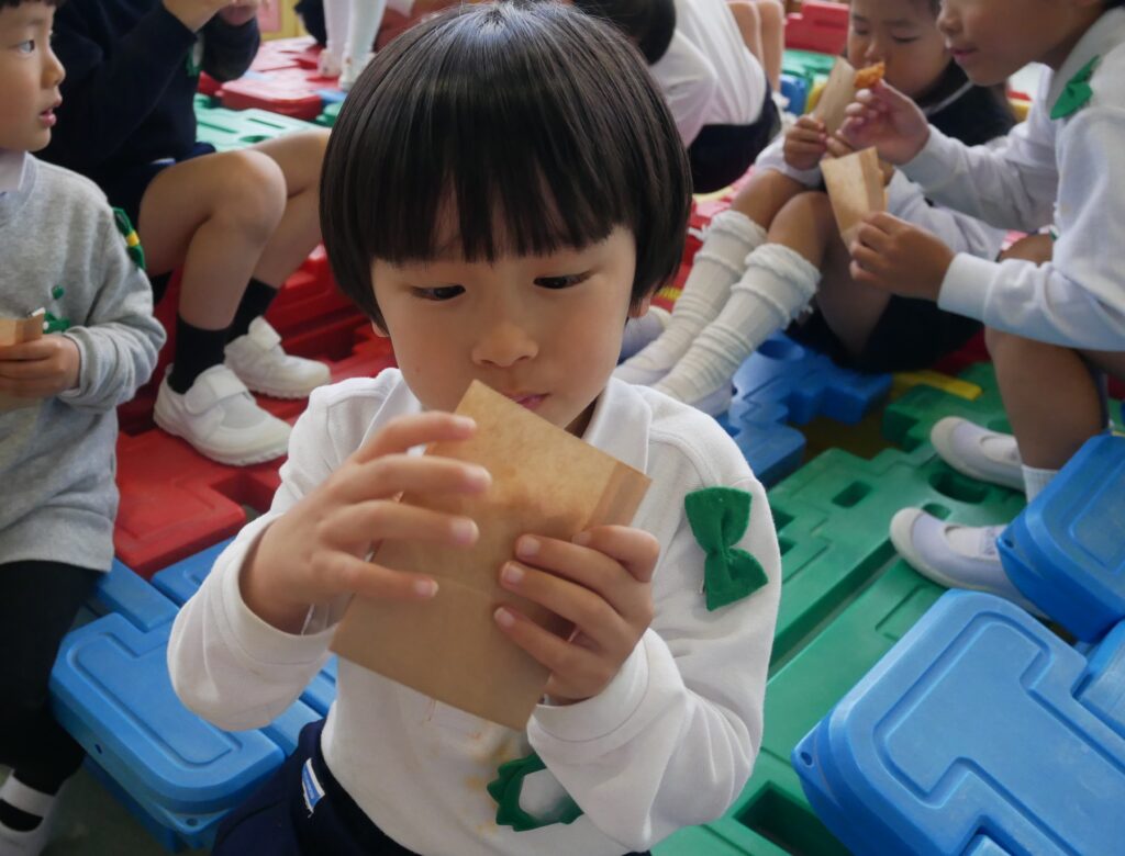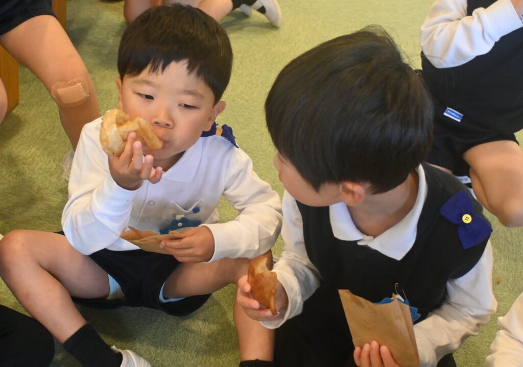 「サクサクするよ~♪」「甘くて美味しいね♡」『おかわりある?」と友だちと話しながら楽しく食べました。