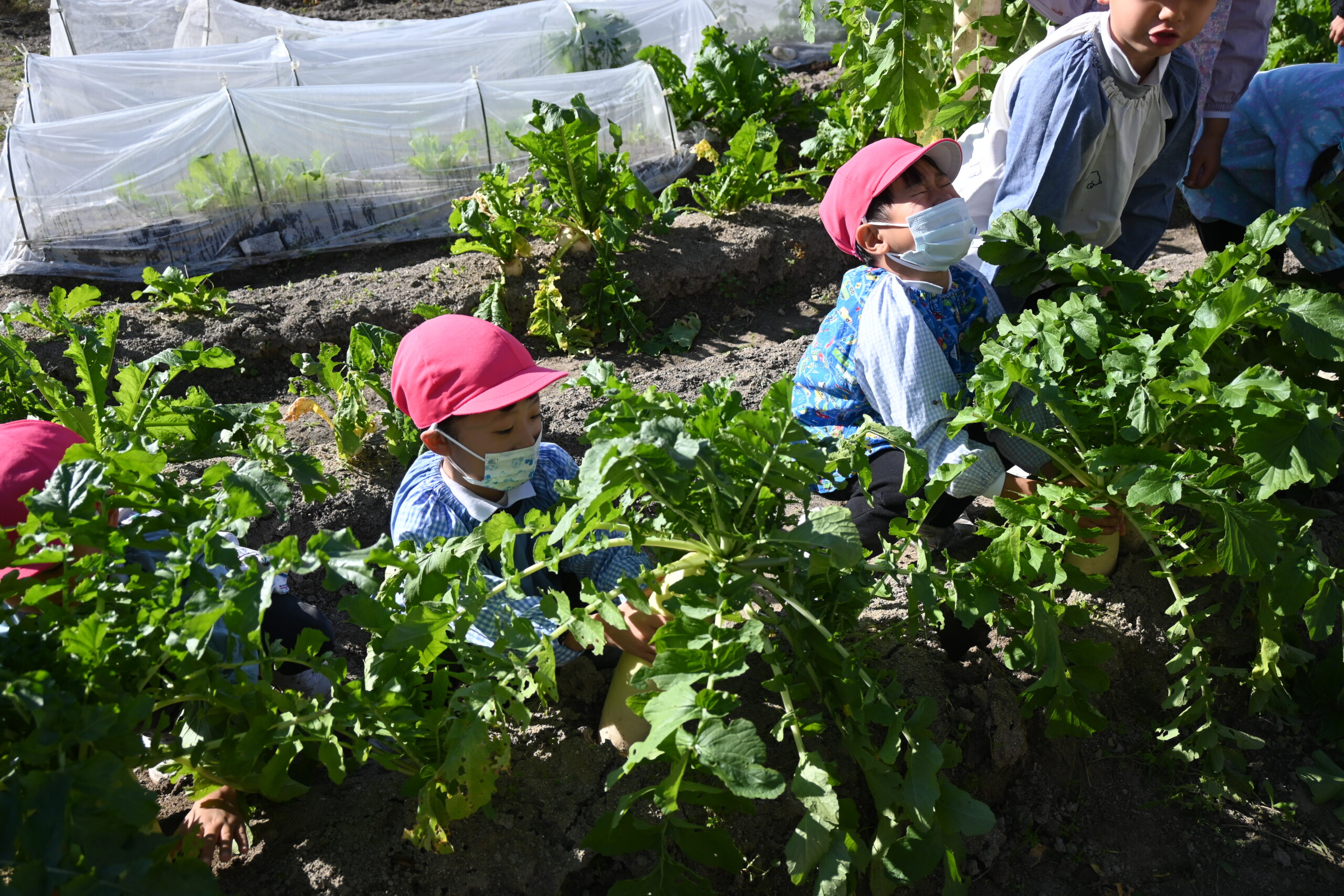 さくら組で、浅井先生の畑に大根掘りに行きました。 とても立派な大根で、「なかなか抜けな~い!」と力いっぱい抜いていました! お土産に持って帰った大根は、「おでんにして食べようかな♡」「大根おろしをのせたハンバーグが食べた […]
