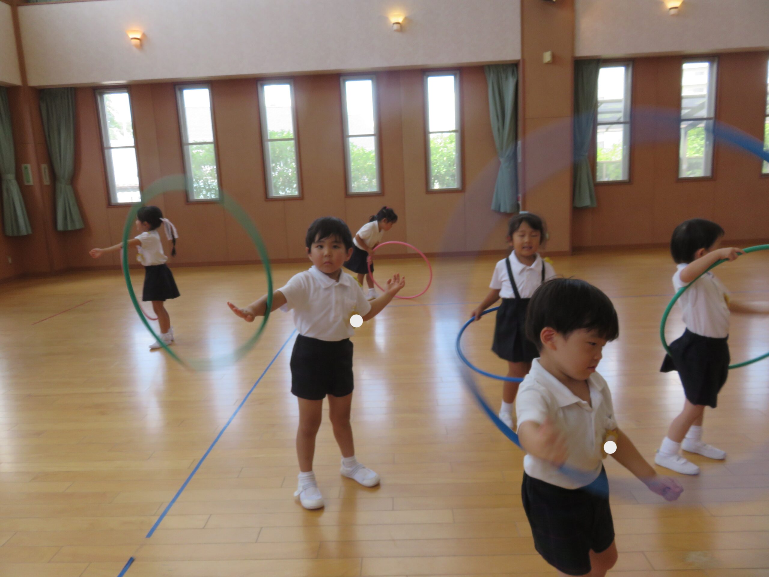 2学期が始まりました。年中さんはフラフープに挑戦中!夏休みにお家で挑戦した子もいて、「見て見て!」と回すところを見せあったり、友達に「こうやって腰をフリフリすると回るよ!」と教え合ったりする姿も見られます。 回せるよ […]