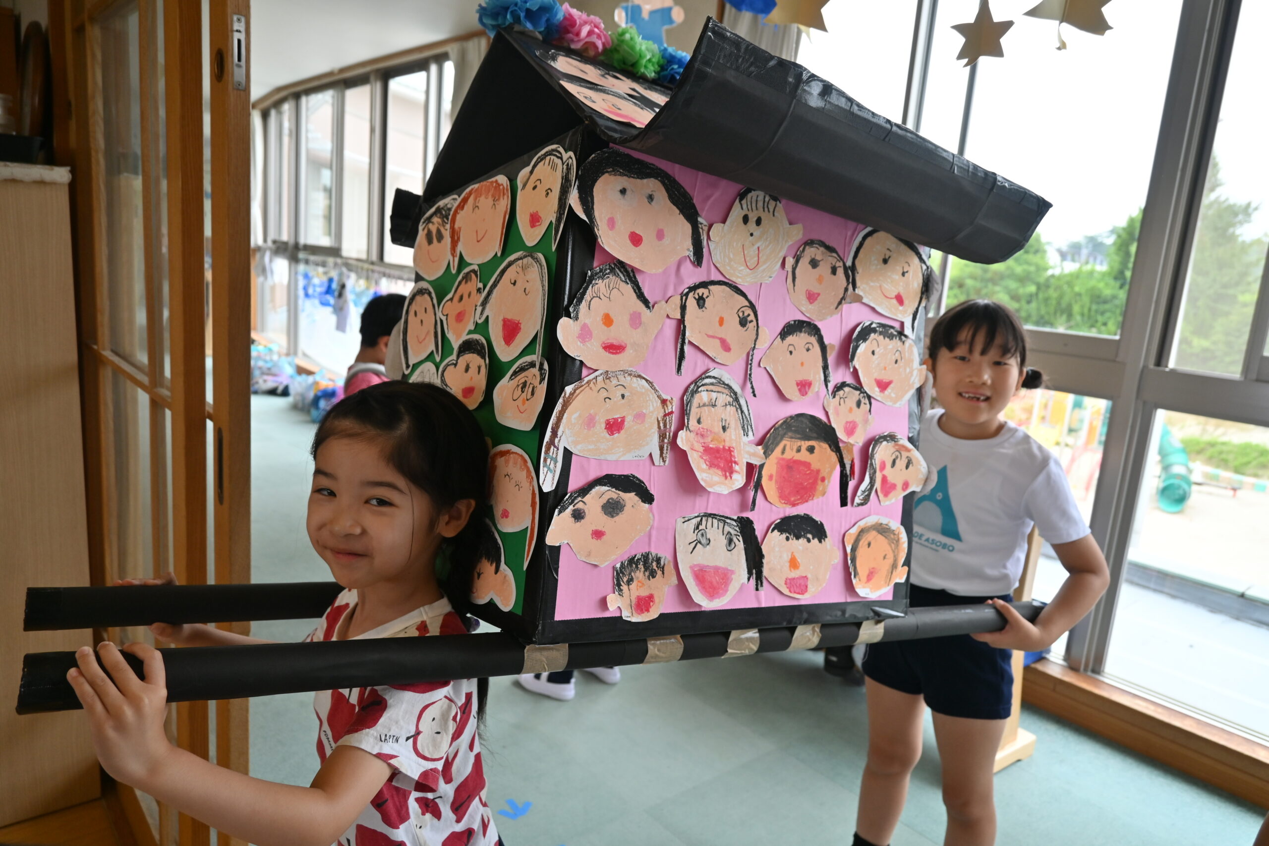 今日は、年長の子どもたちが楽しみにしていたお泊り保育です。 お神輿を担いだり、クラス対抗ゲームをしたり、出店で買い物をしたり、ボールすくいにチャレンジしたり・・・。 かき氷やお菓子の出店で食べ歩き、映画館でキャラメルコー […]