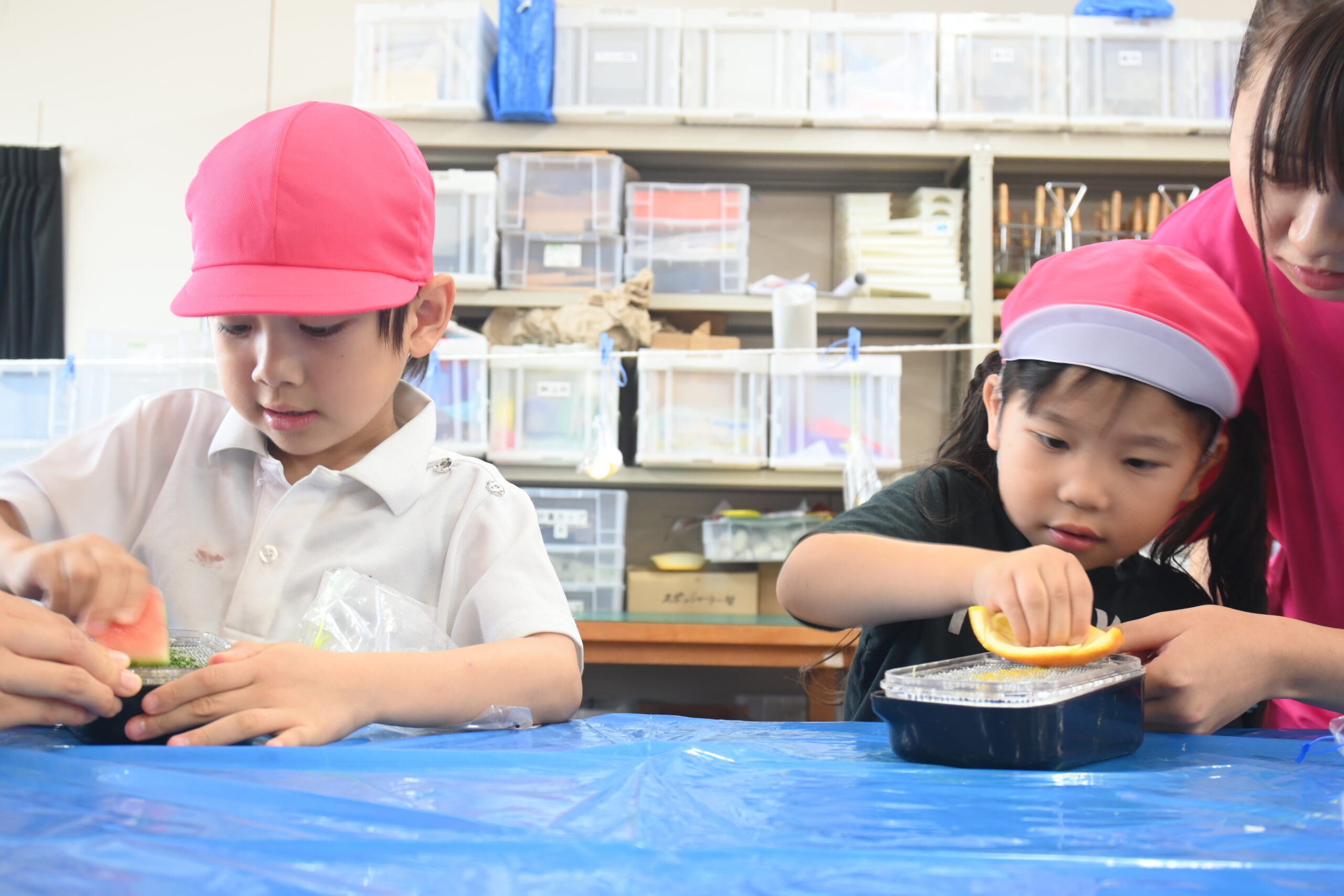 年長組の植えた野菜がどんどん成長しています! 今日はオクラときゅうり、初めてミニトマトも収穫しました。 収穫したきゅうりを切ってみると・・・「あっ!星形のきゅうりだ!」と子どもたちは大喜び♪ オクラもめんつゆで味付けし、 […]
