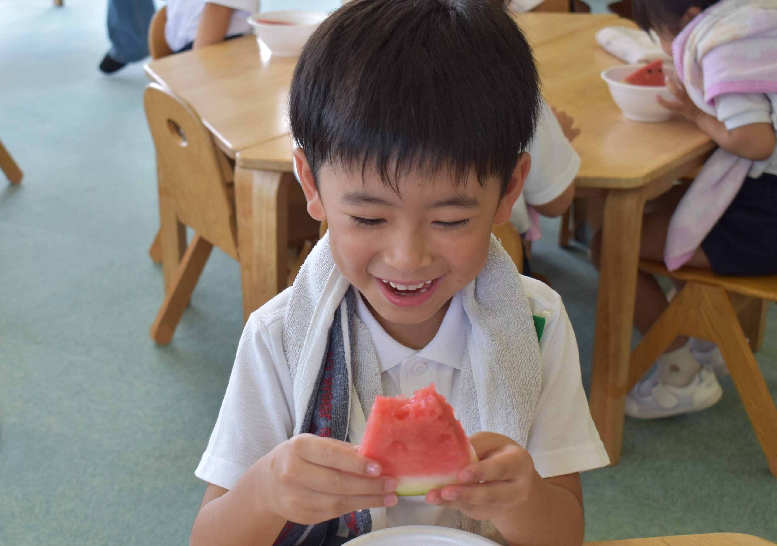 7月7日、七夕の日です。笹飾りを眺めながら、七夕会を行いました。ホールに集まって七夕の話を聞いたり、七夕の由来の映画を見たり、じゃんけんゲームをしたりしました。ホールではお供えの大きなスイカを先生たちが切ってくれて、う […]