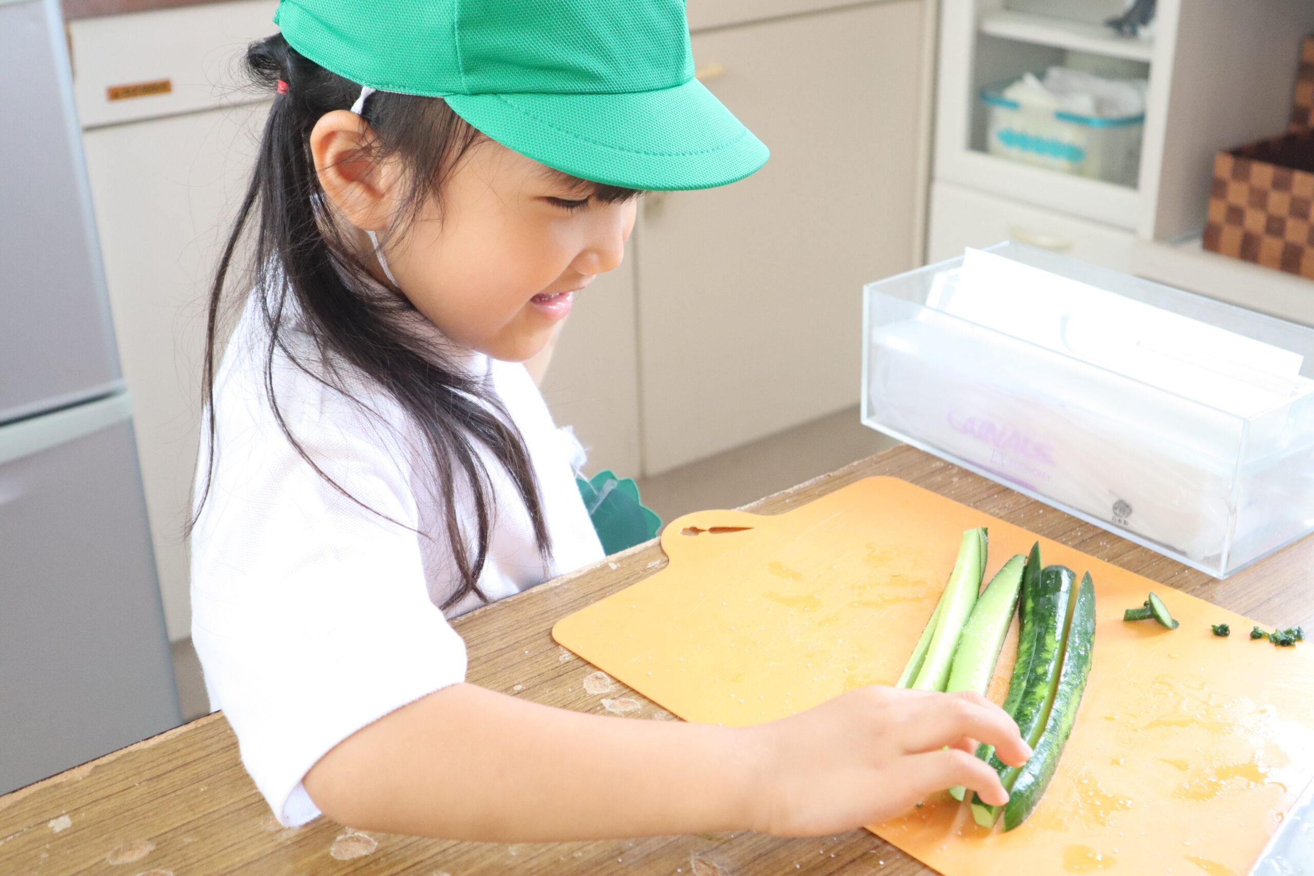 すずらん組の子どもたちが、「美味しくなーれ」と願いを込めて育てているきゅうりが、食べ頃にになりました。 「あ、きゅうりができてる」と早速 見つけた子どもたち。「早く採りたい、すぐ食べたい、塩をつけて食べたい」とリクエスト […]