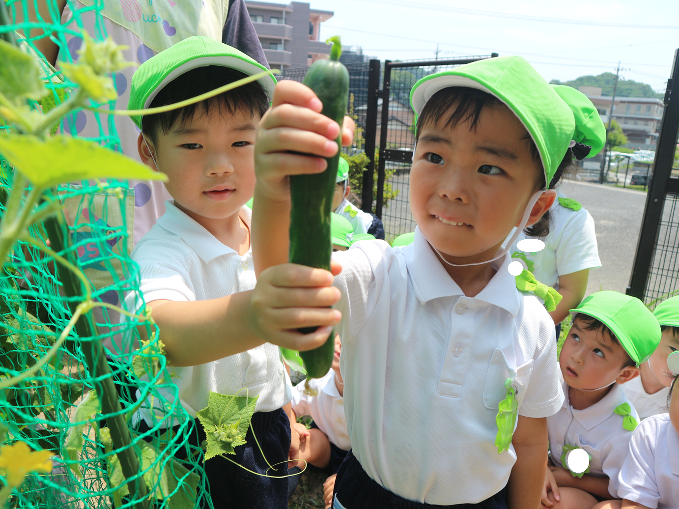 キュウリを収穫したよ♪ちゅうりっぷ組・たんぽぽ組