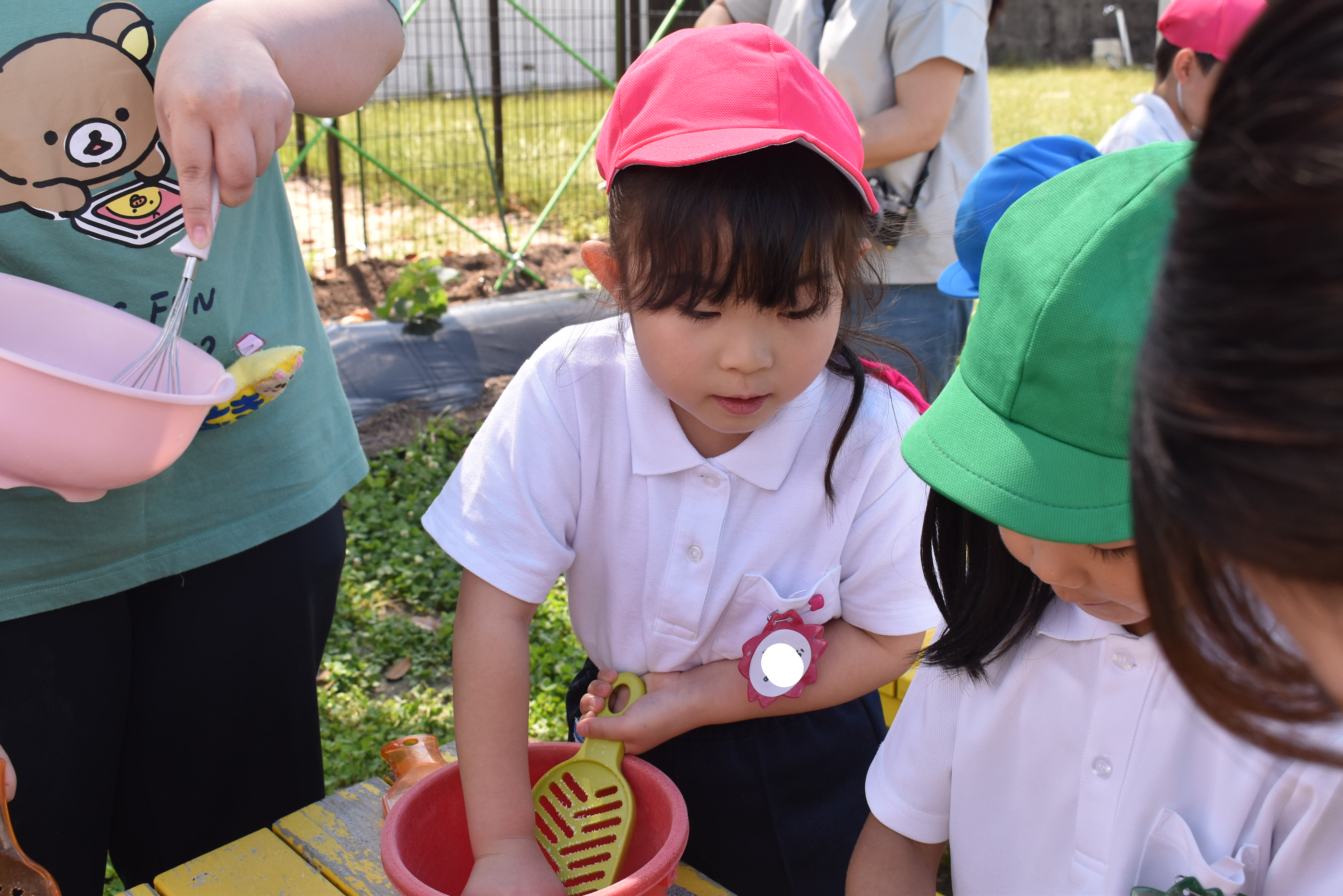 今日もいい天気で、しゃぼん玉に挑戦しました☺ 昨日のゼリー屋さんの続きがしたい子、ウォータースライダーを楽しんでいる子、泥に入って感触を確かめている子。毎日にこにこの満3歳児クラスの子どもたち。「楽しすぎ~ […]