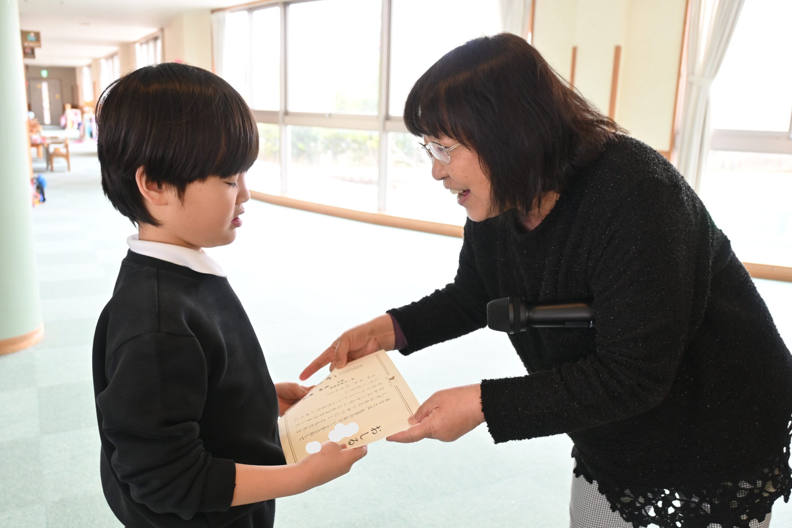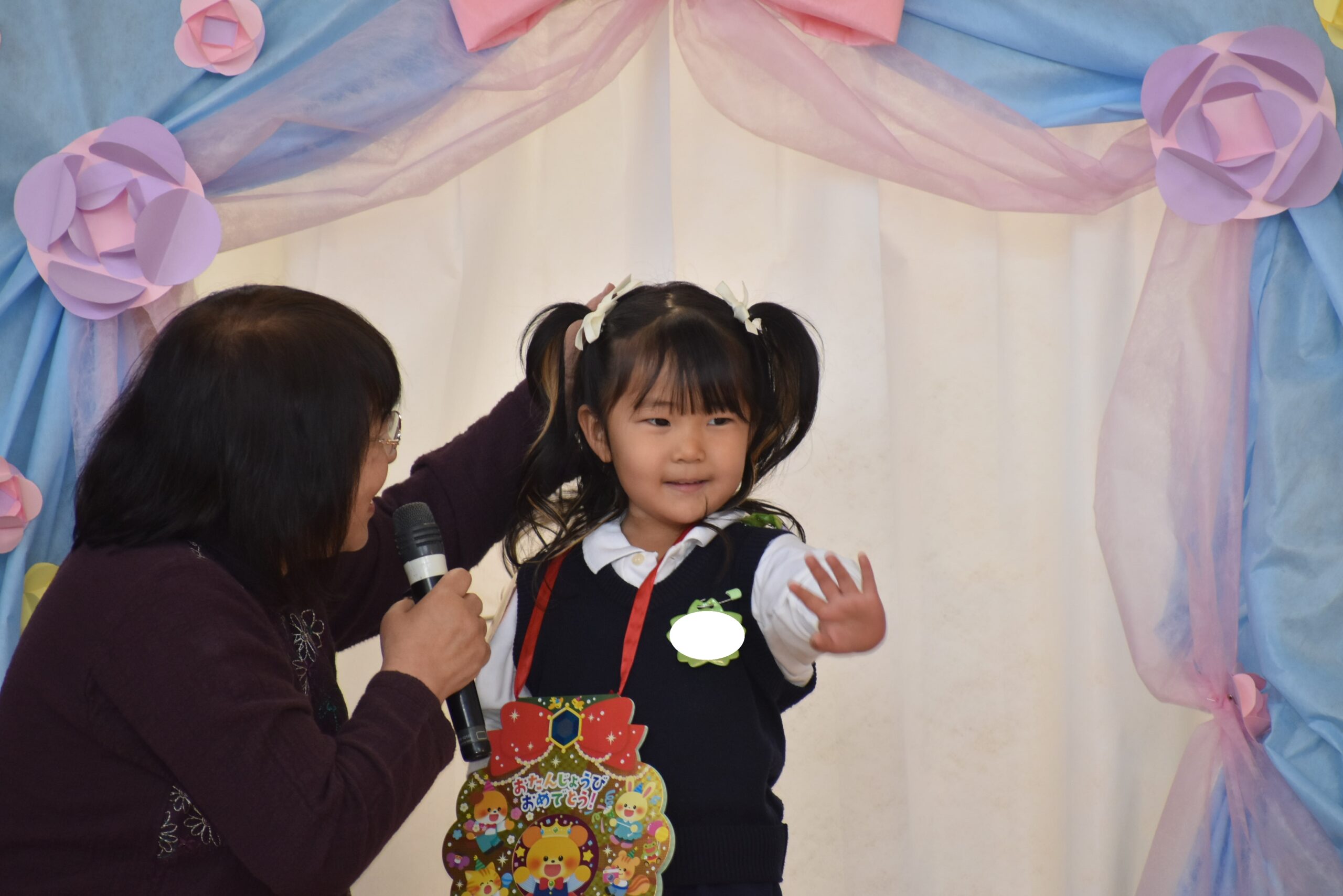 お茶会の日に欠席していた子は園長先生からおしるしを頂きました。