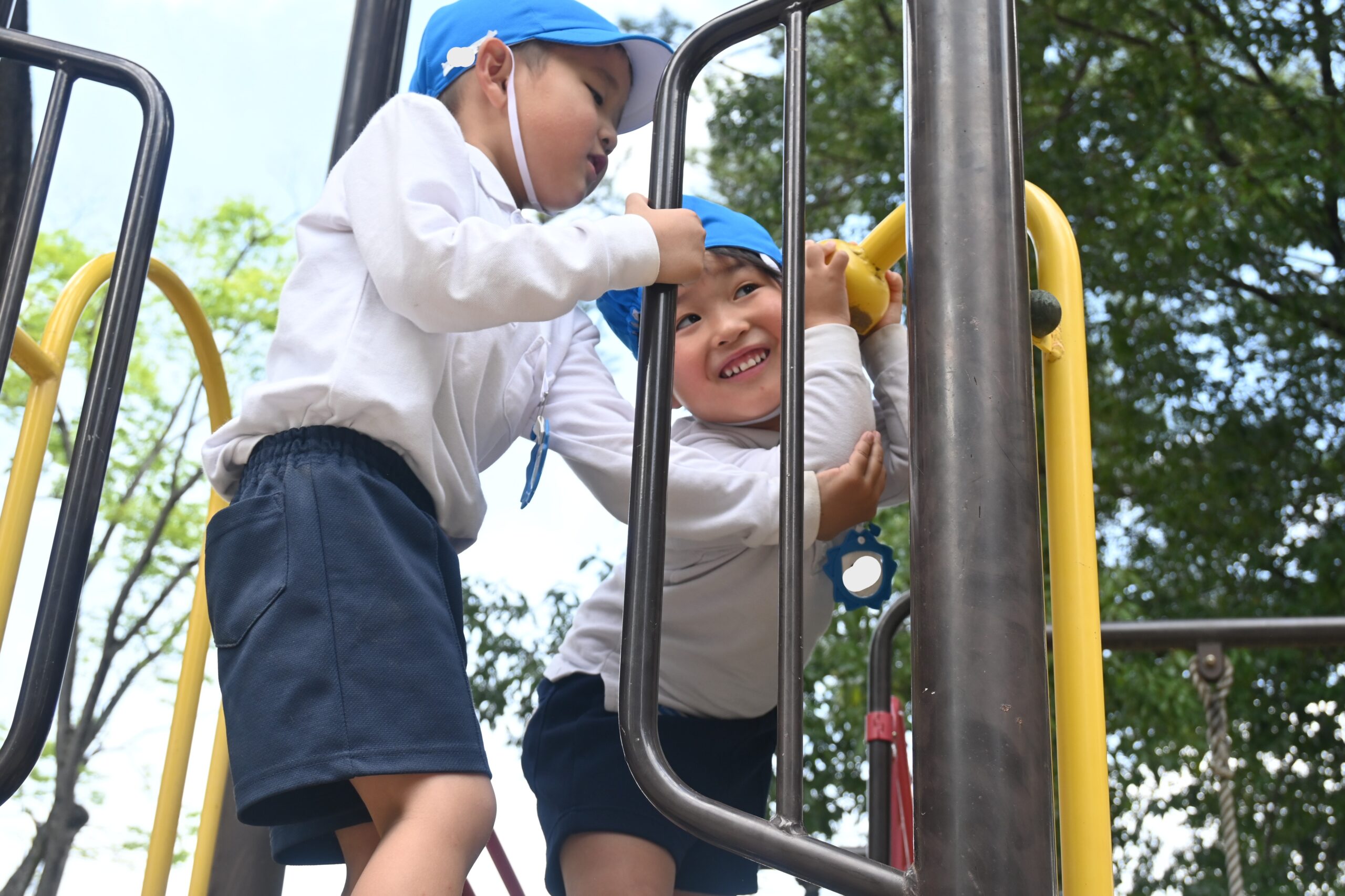 年長児が歩いて東公園に行きました。鯉や花を見たり、遊具で遊んだりしました。 今日は気温もちょうどよく、お散歩日和でした😊
