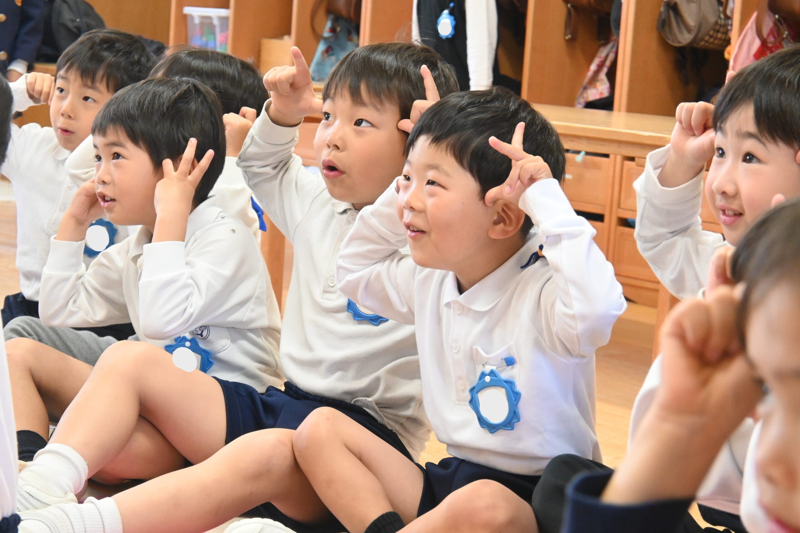 年長組が今年度はじめてのエルトンさんと遊ぼうがありました。 一緒にこいのぼりの歌を歌ったり、絵本を読んだりしました! 最後には、だるまさんが転んだを一緒にして、体を動かしながら英語に触れあうことを楽しみました♪