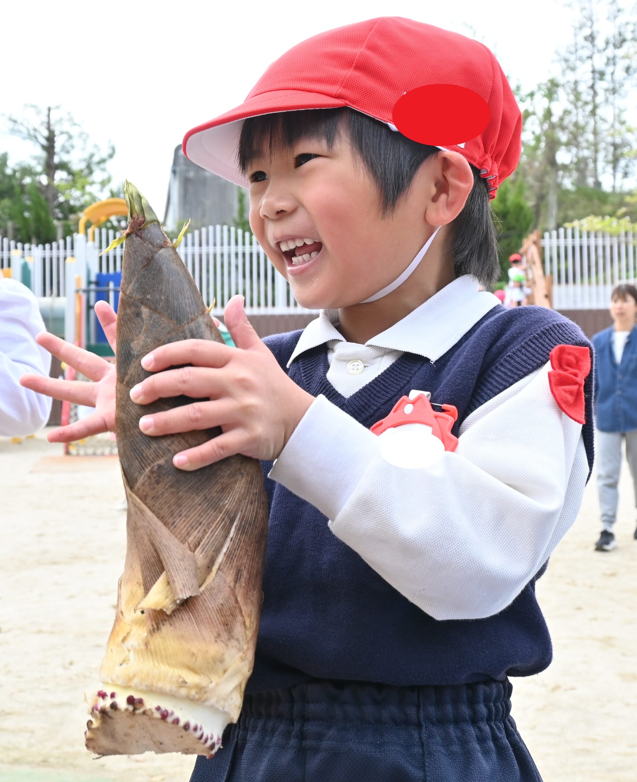 朝剝いた『たけのこ』を、さっそく食べました♪食べたことがある子もいれば、初めて食べるという子もたくさんいました!味噌・マヨネーズ・塩、どの味が美味しかったかな???