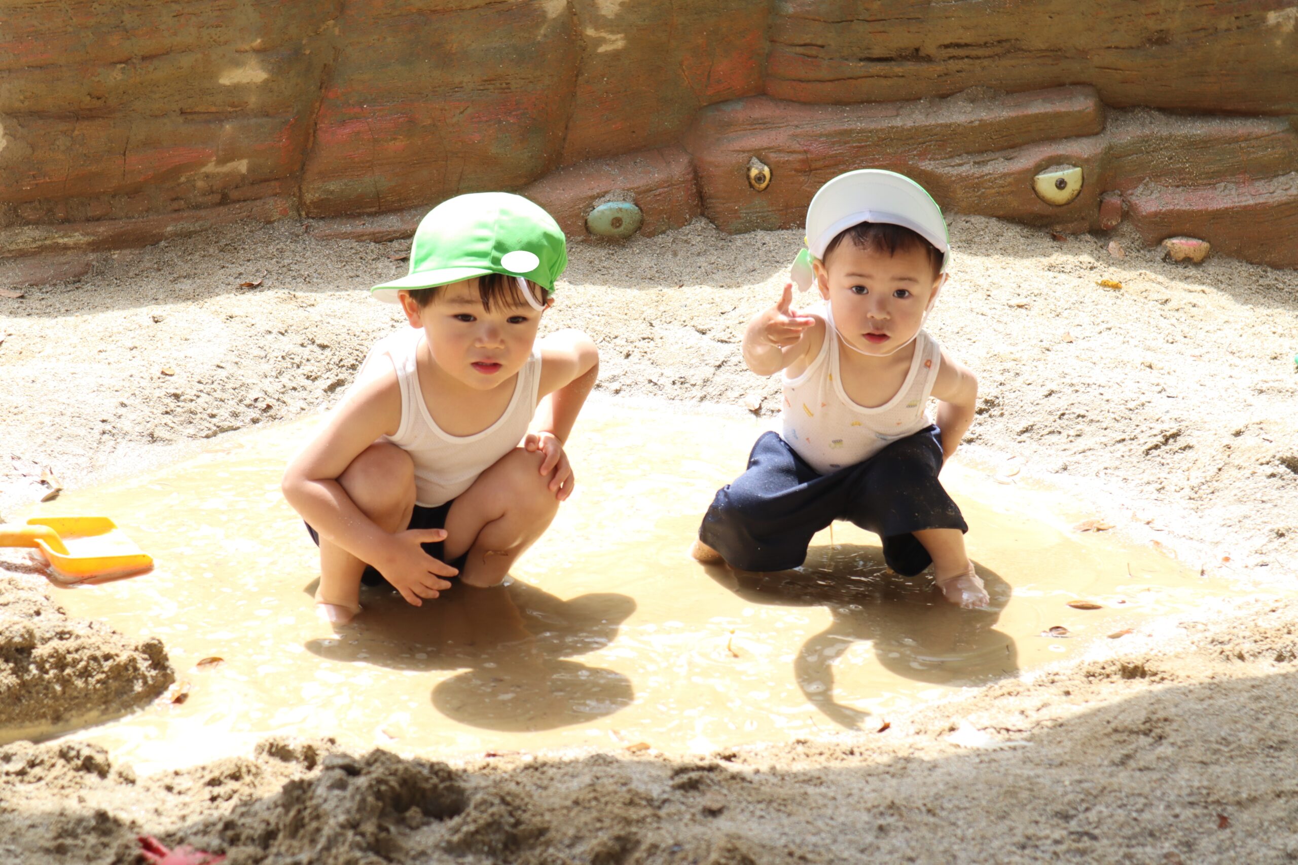天気が良かったのでたんぽぽ組のみんなで泥んこ遊びをしました☆ 泥の感触や、水の冷たさに子どもたちはとても楽しそうでした! 水の道を作ったり、大きな海を作ったりして遊びました。 また、みんなで泥んこ遊びしようね♡