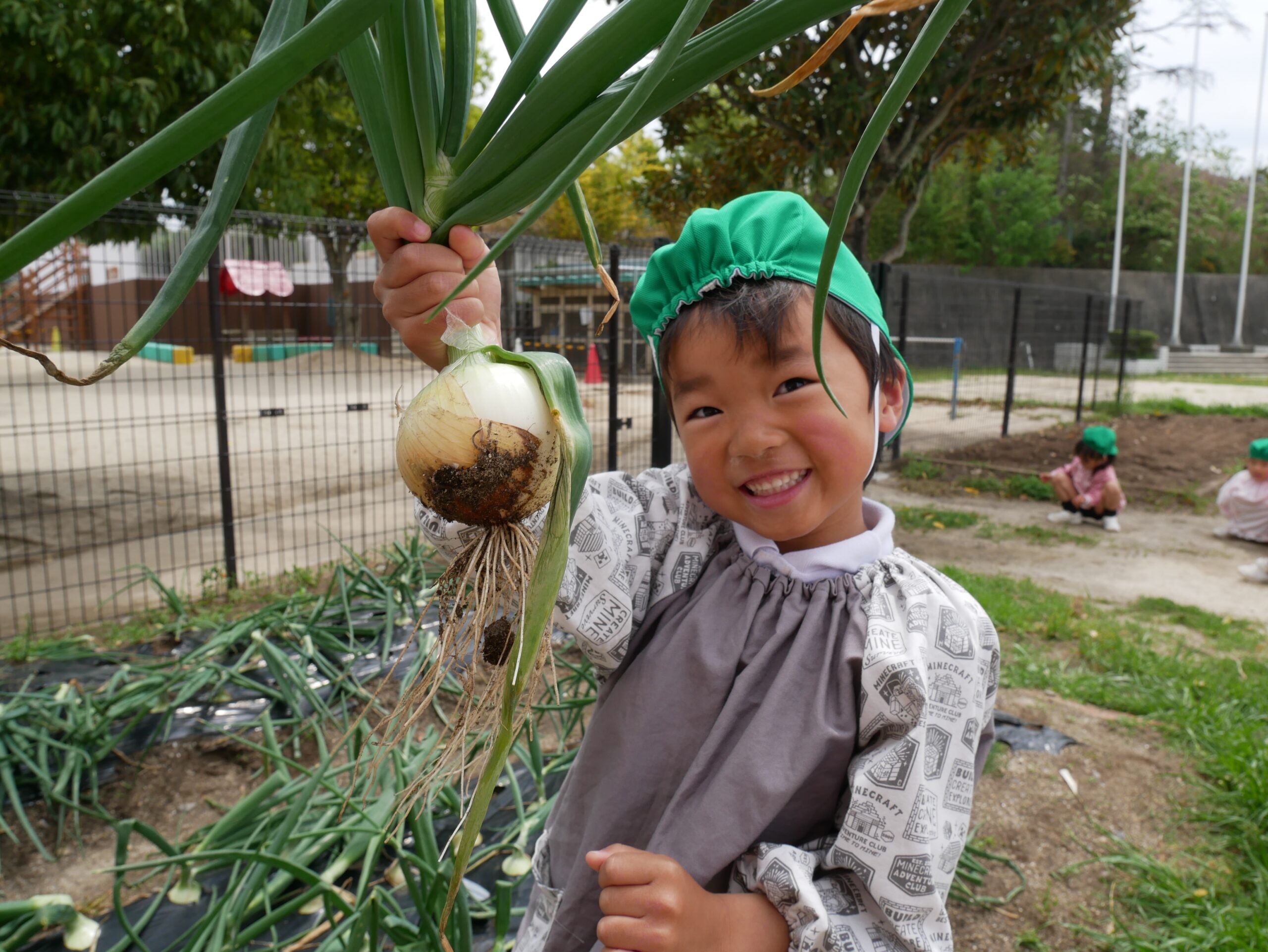 年中の時に植えた玉ねぎが大きくなり、今日は玉ねぎを収穫しました。 力いっぱい抜いてみると大きな玉ねぎが出てきました! 子どもたちは「俺の大きいよ!」「すごい!」など大きな玉ねぎに大興奮!! 大きな玉ねぎを収穫できてうれ […]