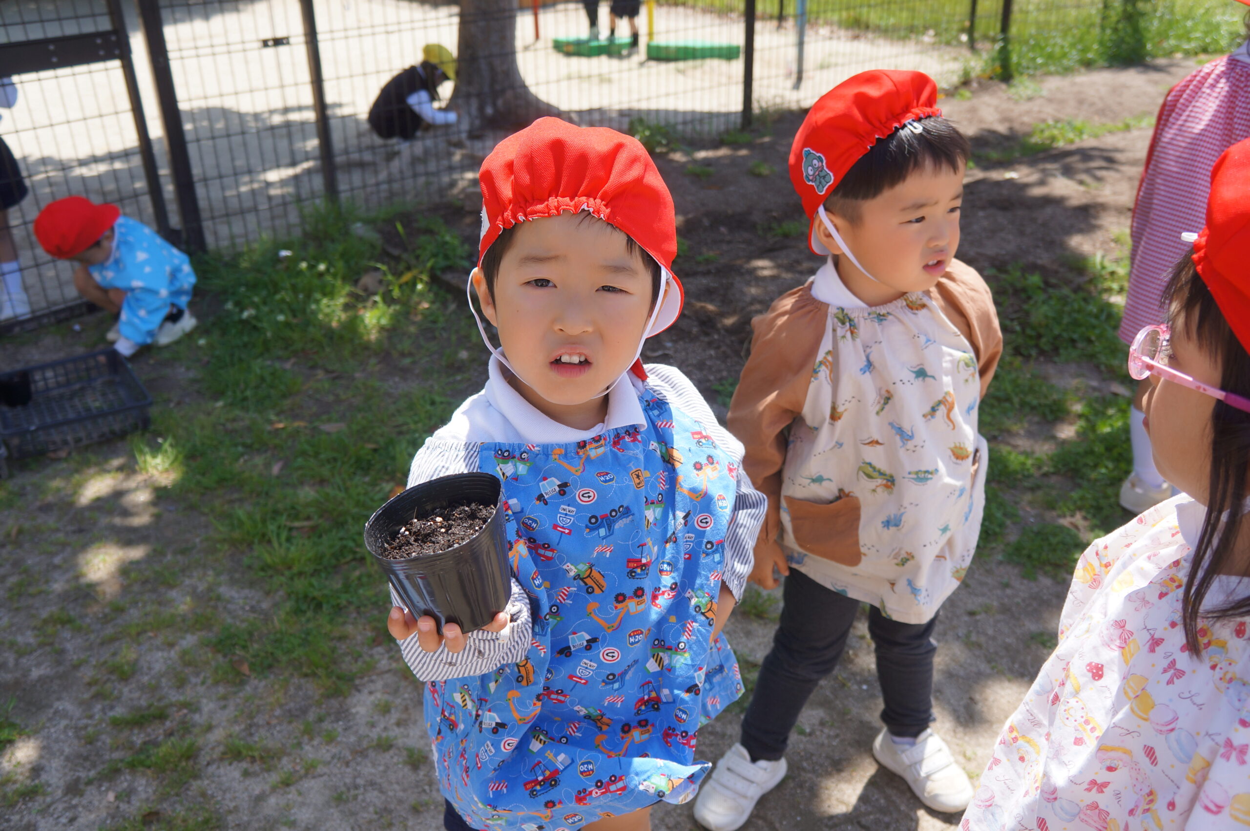 年中は四角豆を植えました。四角豆の写真を見て、「面白い形だね!」「丸じゃないの?」と興味津々の子ども達でした。みんなで協力して、ポットの土に穴をあけたり、種を穴に入れたり、土をかぶせたりしました。10月頃に食べられると […]