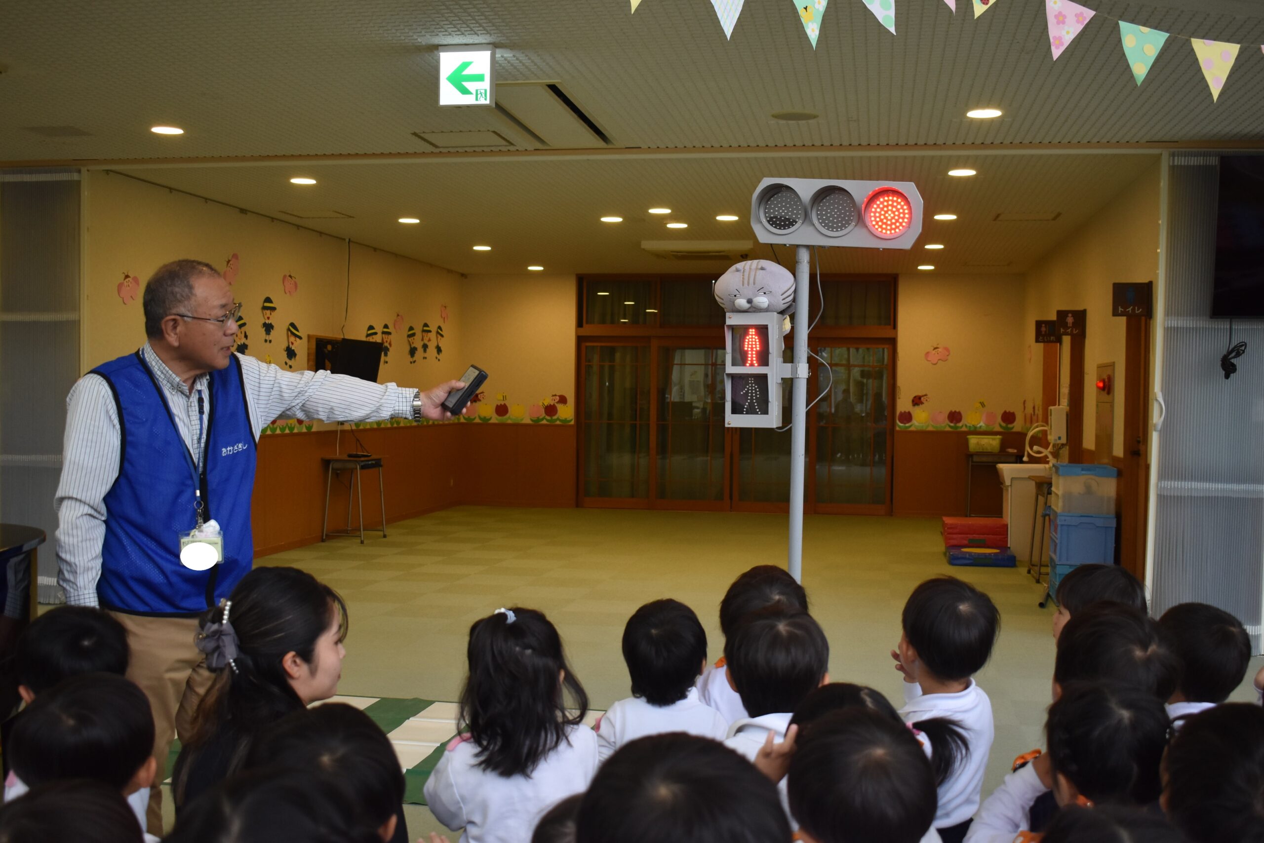年中、年長組はホールで交通安全についての話を聞いたり、ビデオを見たりして横断歩道の渡り方について教えていただきました。 年少組は実際に信号機を見ながら、横断歩道の渡り方を教えてもらいました。 その後エントランスで信号機の […]