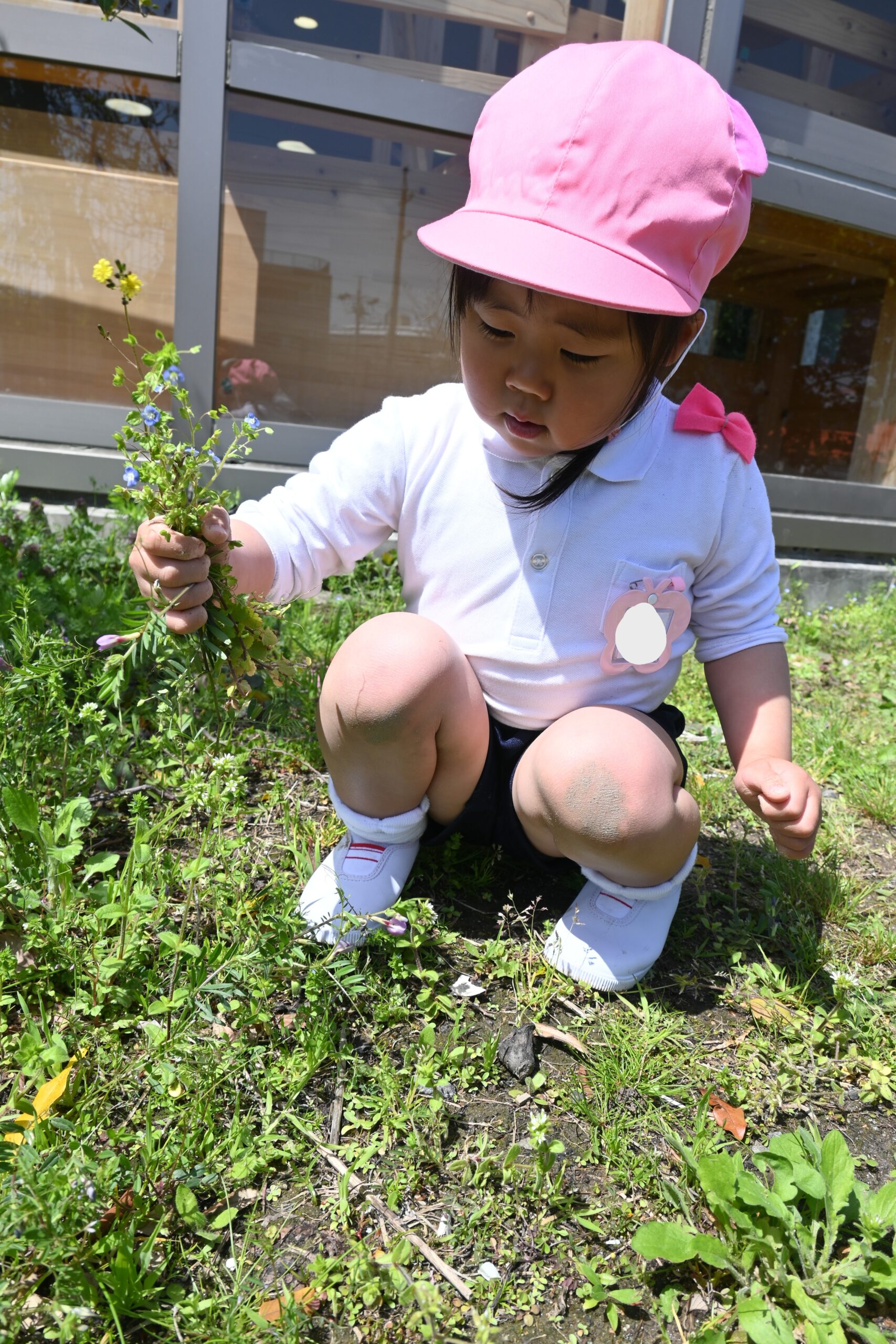 春の草花探しや虫探し、ドッジボールにサッカー、砂場遊びや三輪車など今日も園庭では楽しそうな声が聞こえてきました♪ しっかりと水分補給をしたり、木陰や日陰で休んだりしながら、外遊びを楽しんでいきたいと思います。