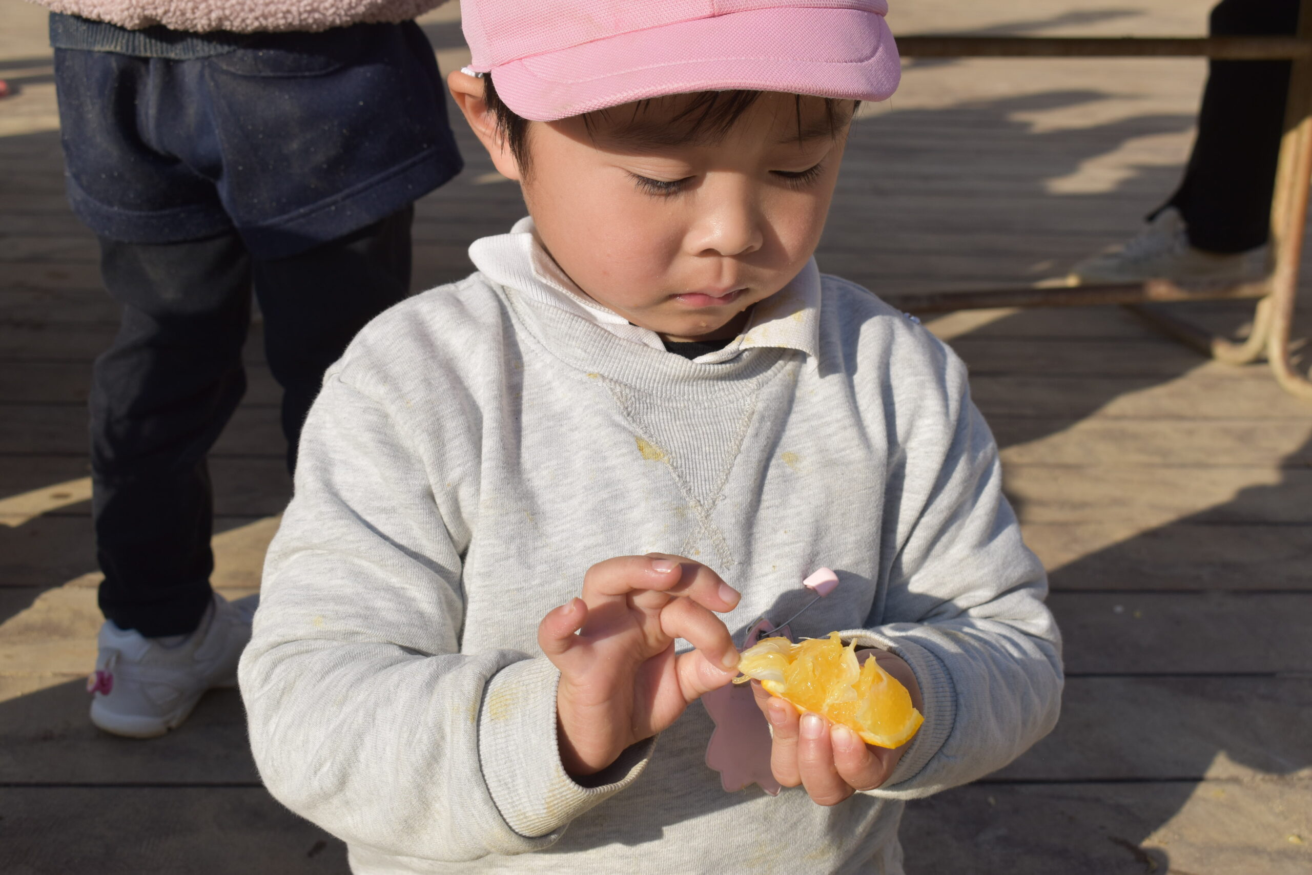 幼稚園の裏の畑の夏みかんの木、今年も沢山のみかんがなりました。みんなで収穫しました。 美味しそうなみかんを選び、食べました。甘酸っぱくて美味しかったね。 お気に入りのみかんを選んでお土産に持ち帰りました。
