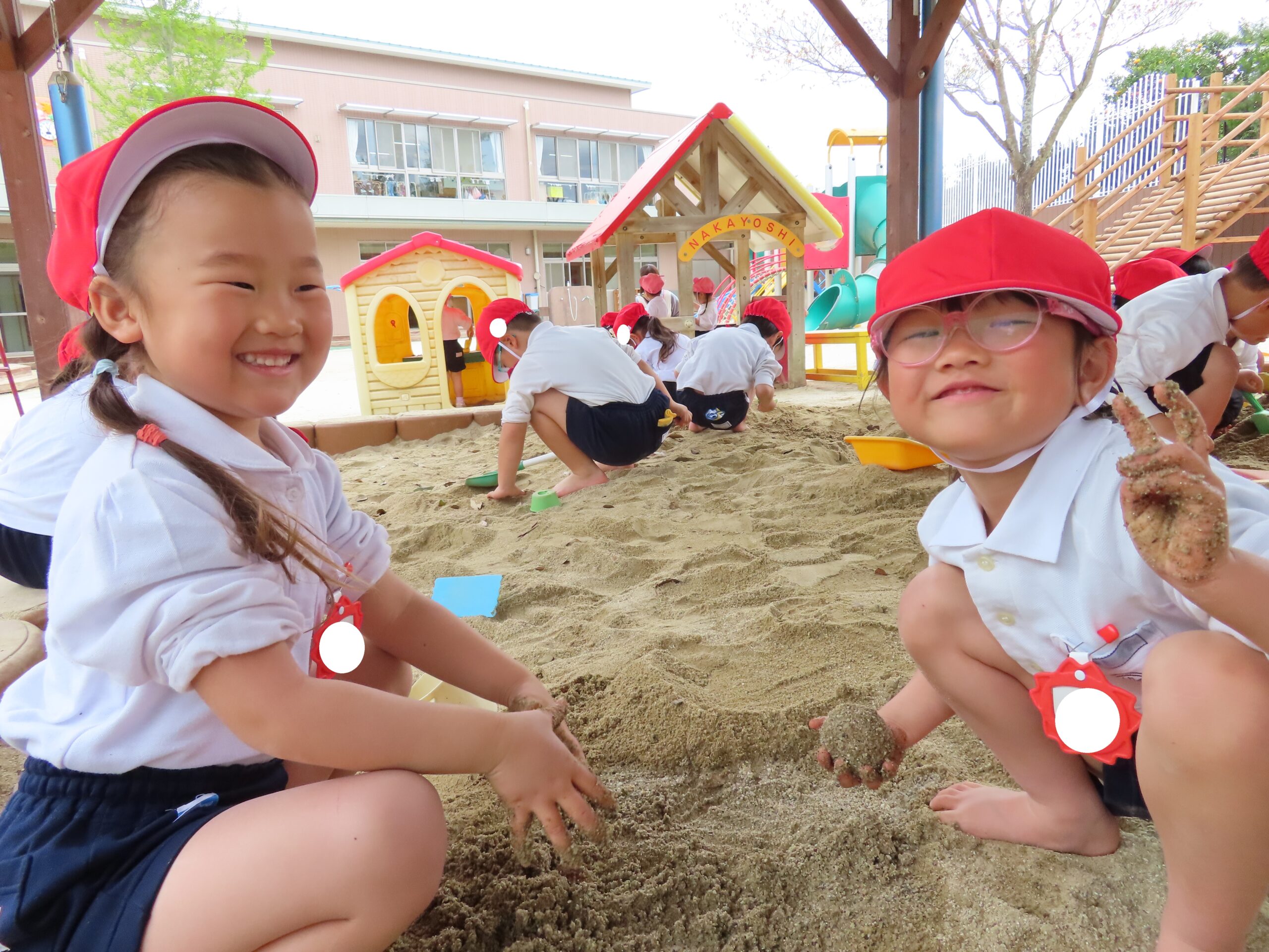 昨日はみんなで砂場で遊びました!裸足になって「きもちいいね!」「ここに道路をつくろうよ!」「みてみて!トンネルができたよ!」と友達とアイデアを出し合って遊ぶ姿がありました☆これからもいっぱい遊ぼうね!