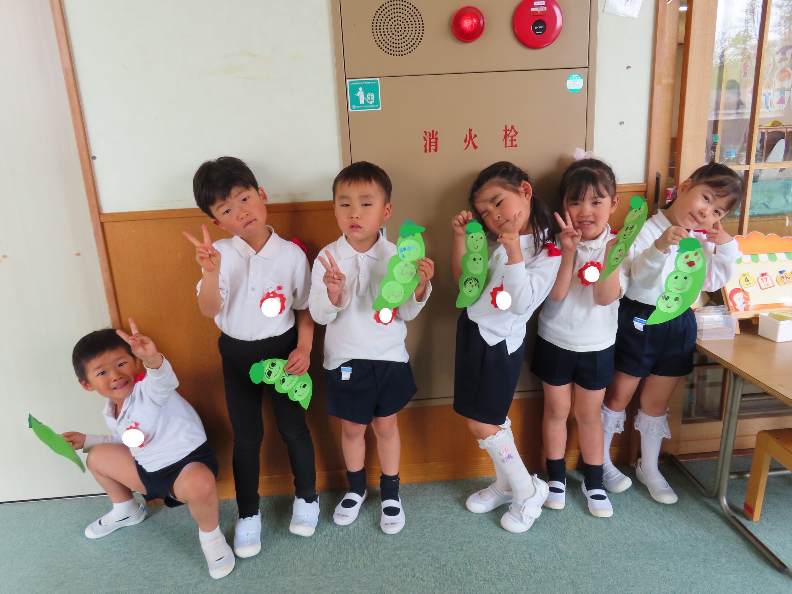 今日は旬の野菜であるスナップエンドウを画用紙やはさみ、のりを使って作りました!はさみを使って画用紙を切ったり、クレヨンを使って顔を描いたりして作りました!「これがお父さんで、こっちがお母さん!」「どんな顔にしようかな? […]