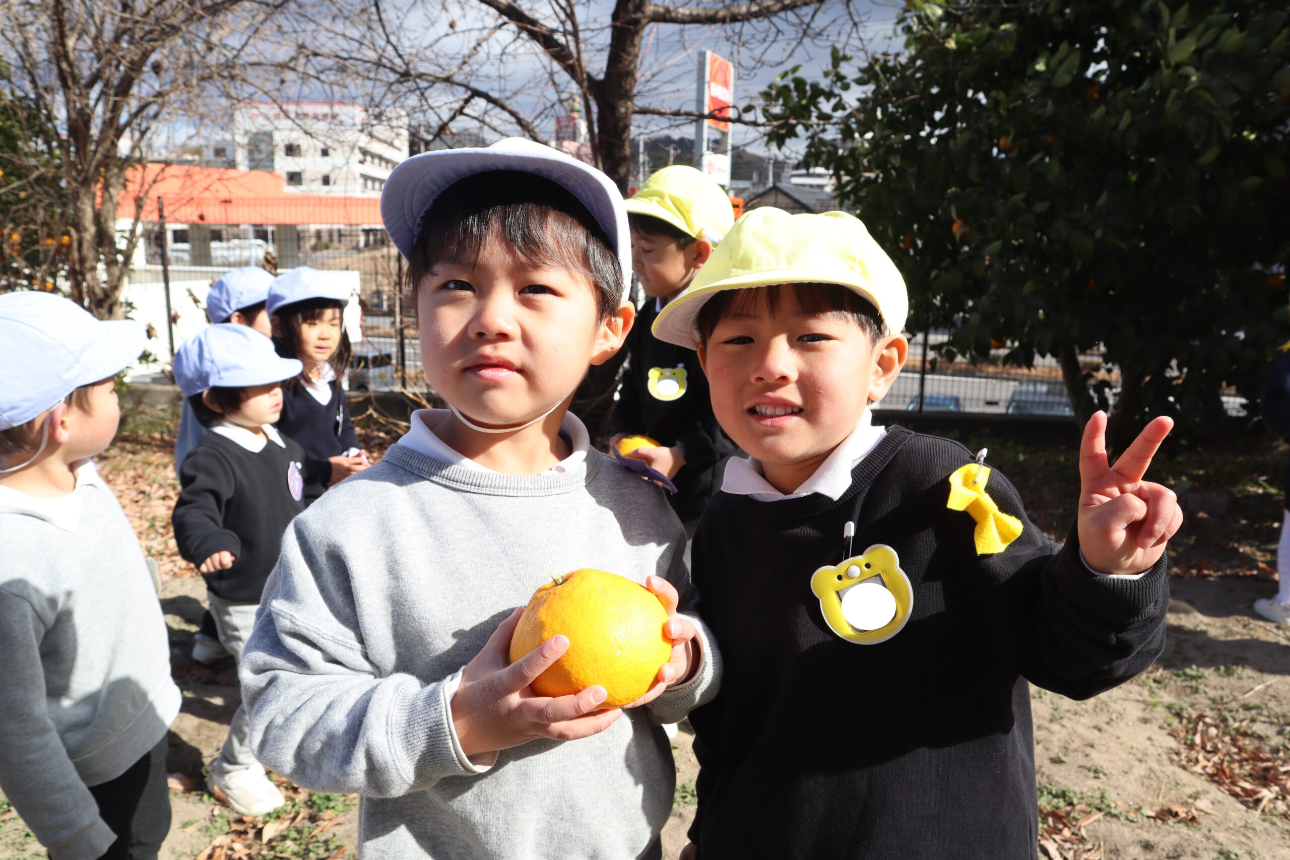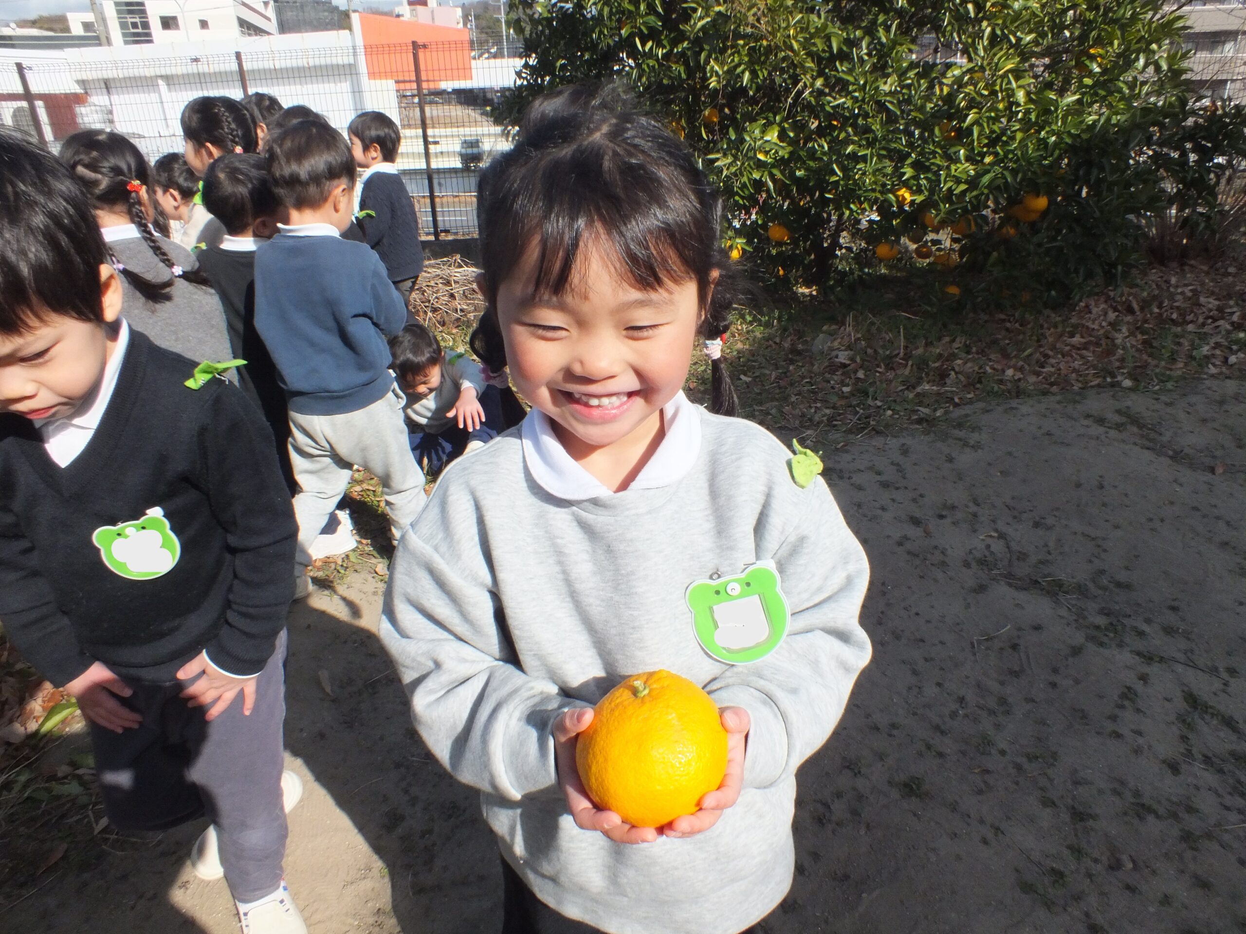 まだ、幼稚園の裏庭の畑に美味しい夏みかんがいっぱいにあったので、みんなで食べました♪