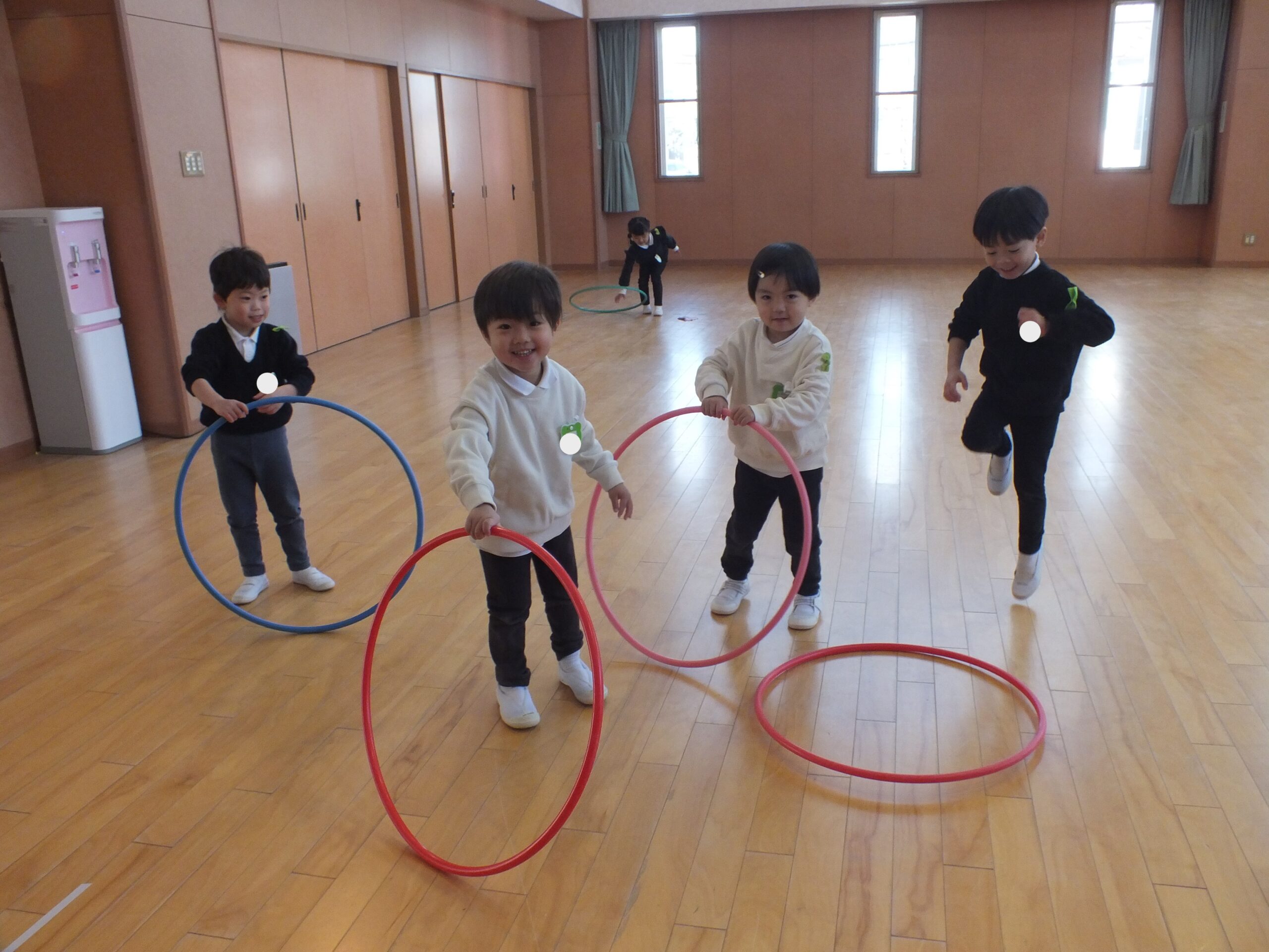 年少さんが、フラフープで遊びました!初めは、頭に乗せたり、地面で回したり、転がしたり、並べてジャンプをしたり、手で回したり、いろいろな遊びを楽しみました! みんなで腰回しにも挑戦!何度も何度も繰り返し挑戦したり、フラフ […]