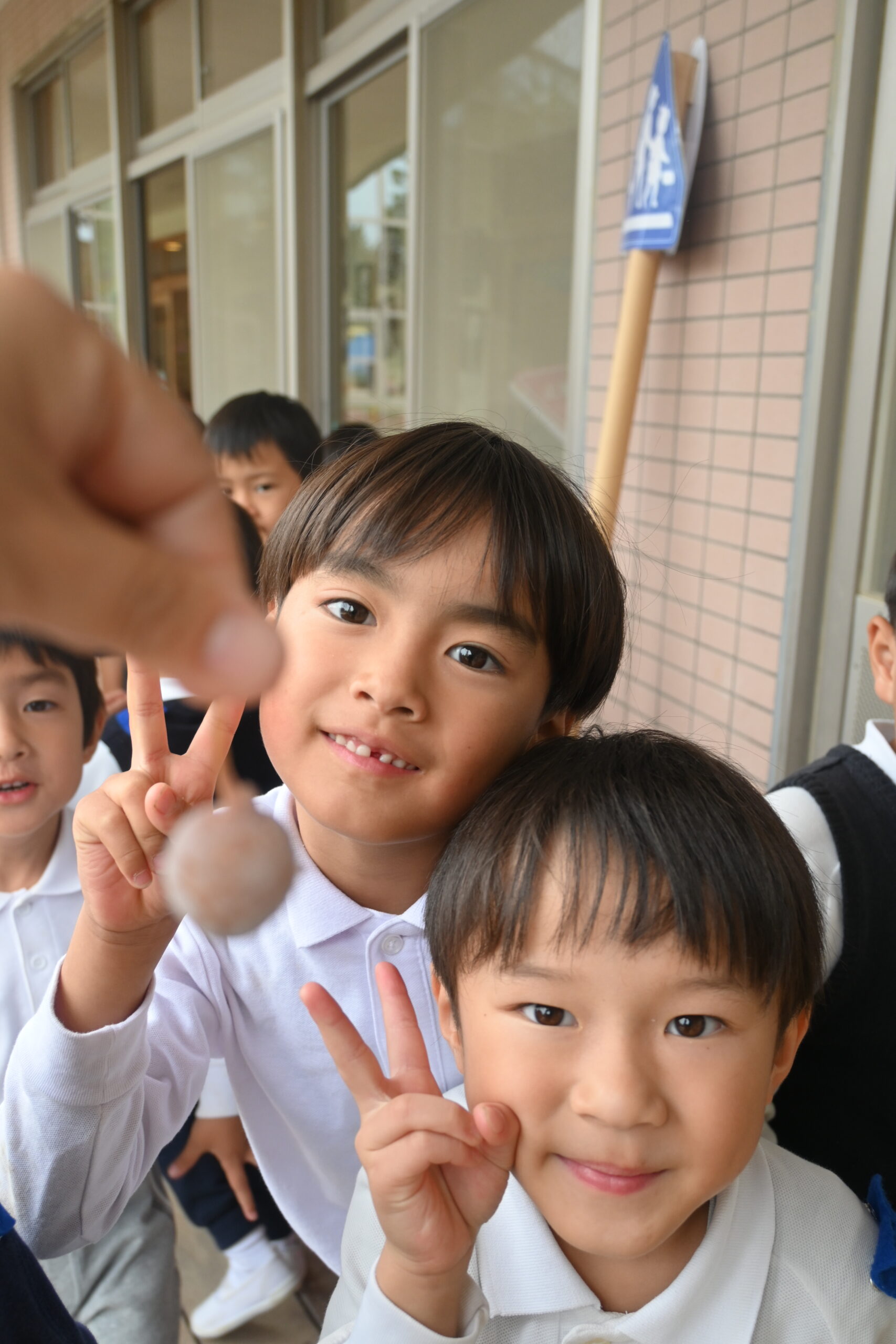 園庭や裏の畑には秋の自然がいっぱいです。 幼稚園にある大きなイチョウの木から、黄色くなった葉っぱと実がたくさん落ちてきます。それを見つけた子が実をバケツにたくさん集めました。手荒れをおこさないように、手袋やスコップで集 […]