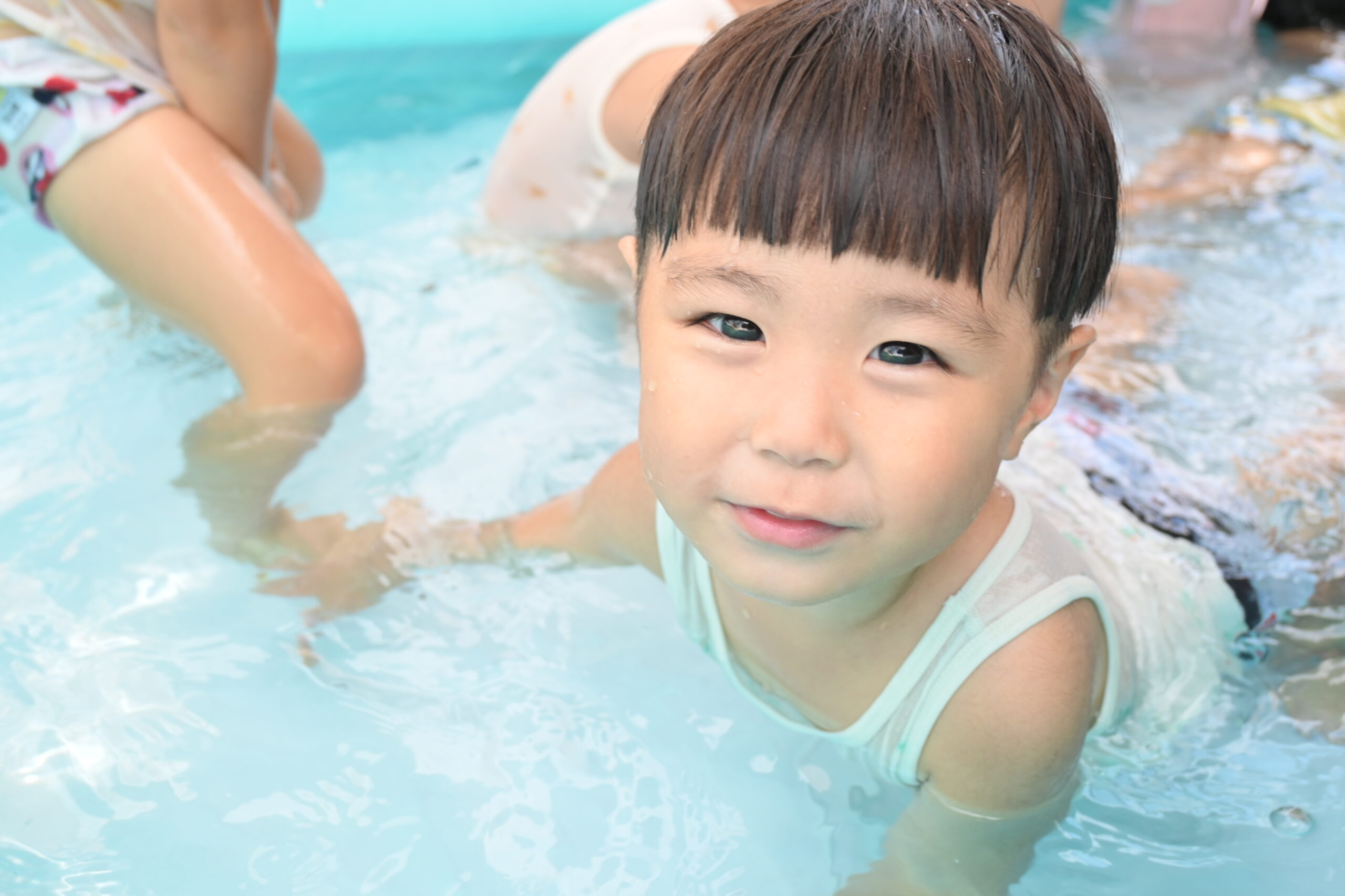 初めての水遊びをしました! 暑かったため水の冷たさが心地よく、「気持ちいね~」とにこにこでした♪