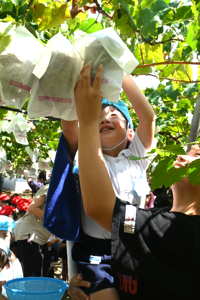 朝から、ニコニコ足取りの軽い年中さん。「ぶどう狩り楽しみだね!」「たくさん食べられるかな?」楽しそうな会話をしながら、部屋に向かっていきました。 天井にぶら下がっているたくさんのブドウを見て、「わーすごい!美味しそう […]
