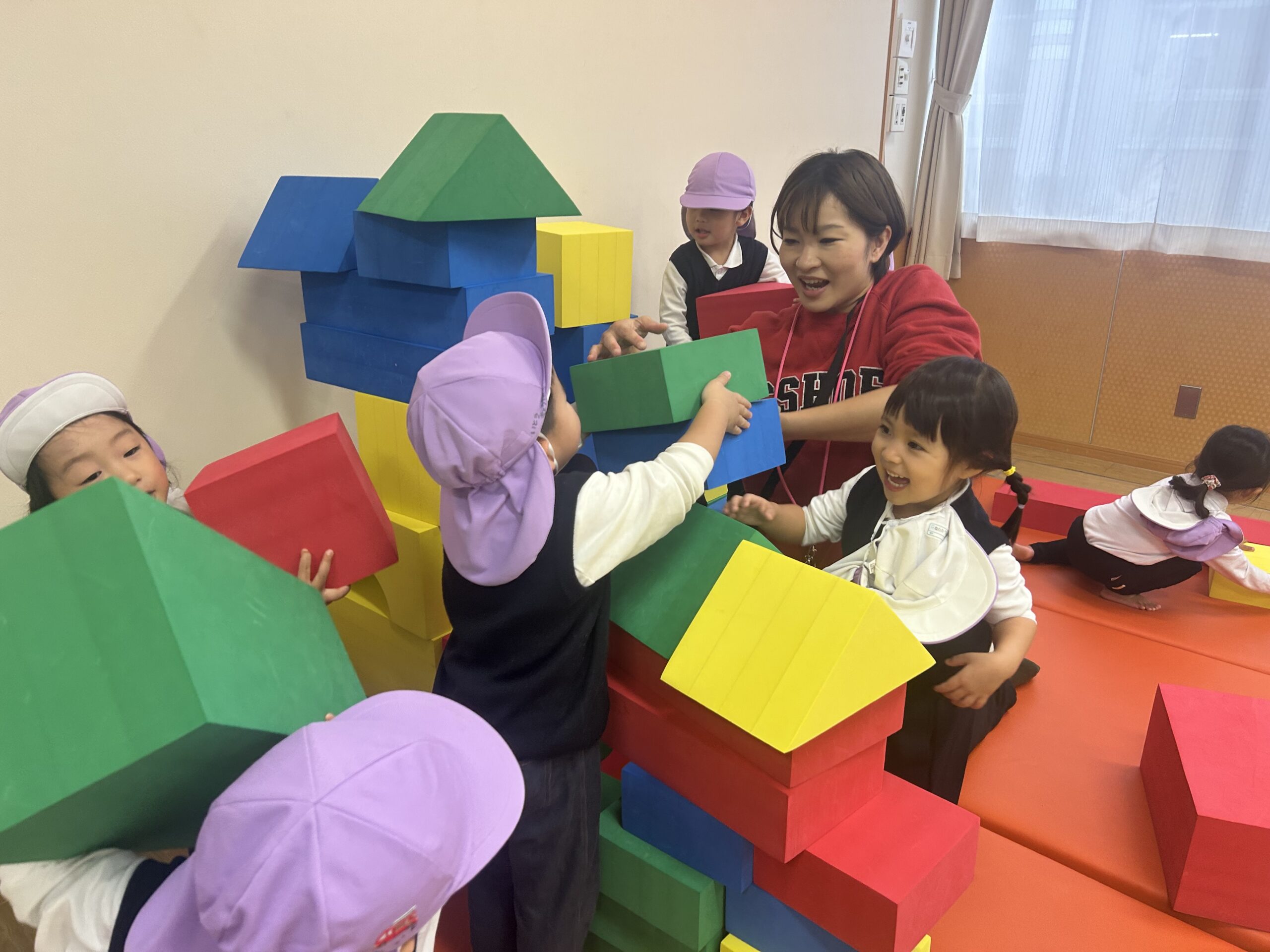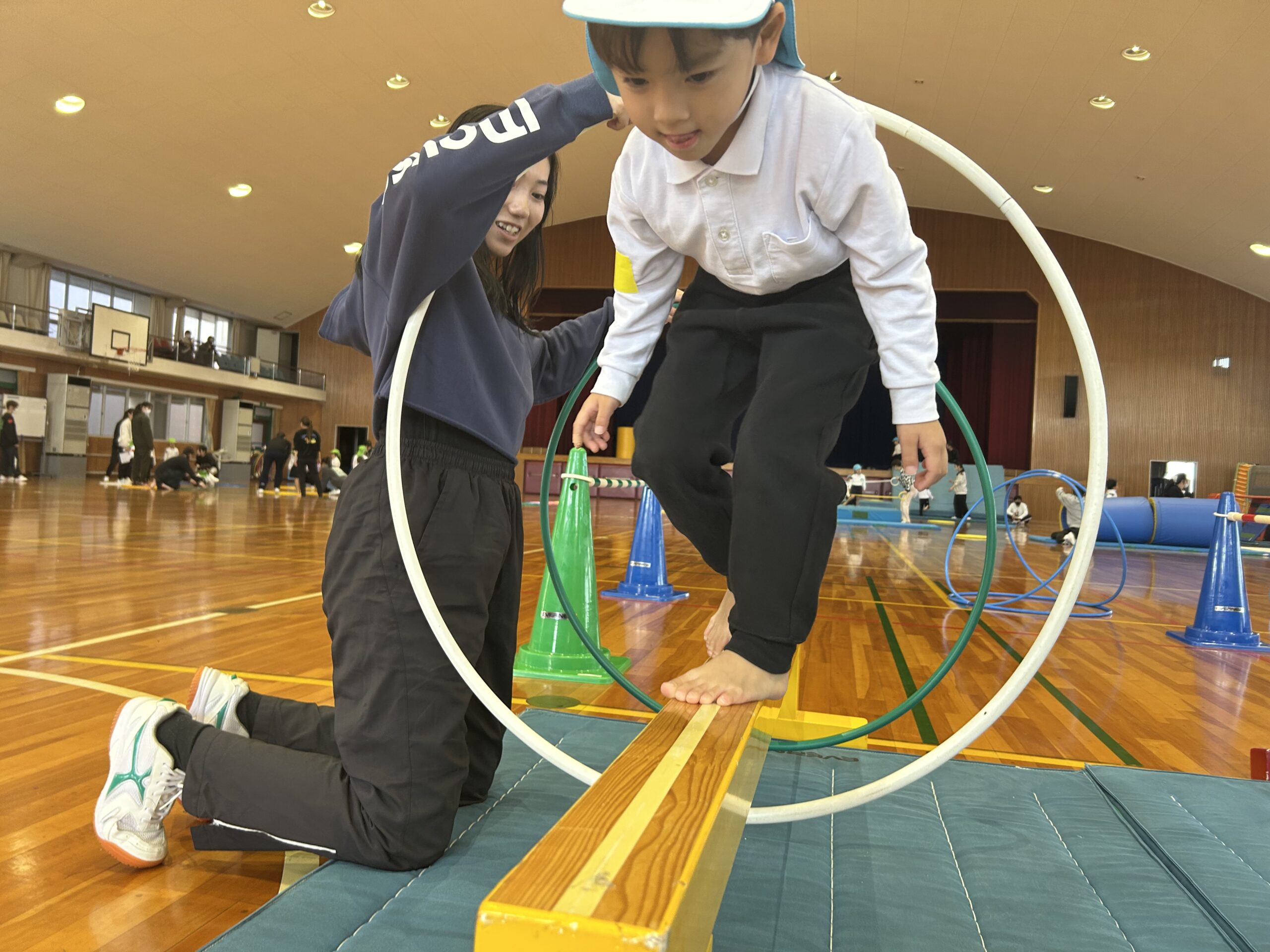 今日は、子どもたちが楽しみにしていた、大学での運動遊びの日でした。 今回は、岡崎女子大学の学生さんが考えた4つの運動遊びを行いました。思いきり体を動かして遊ぶことができ、とても嬉しそうな子どもたちでした(^▽^)/