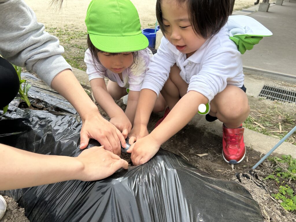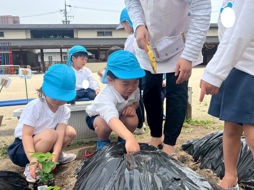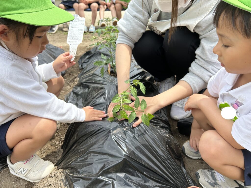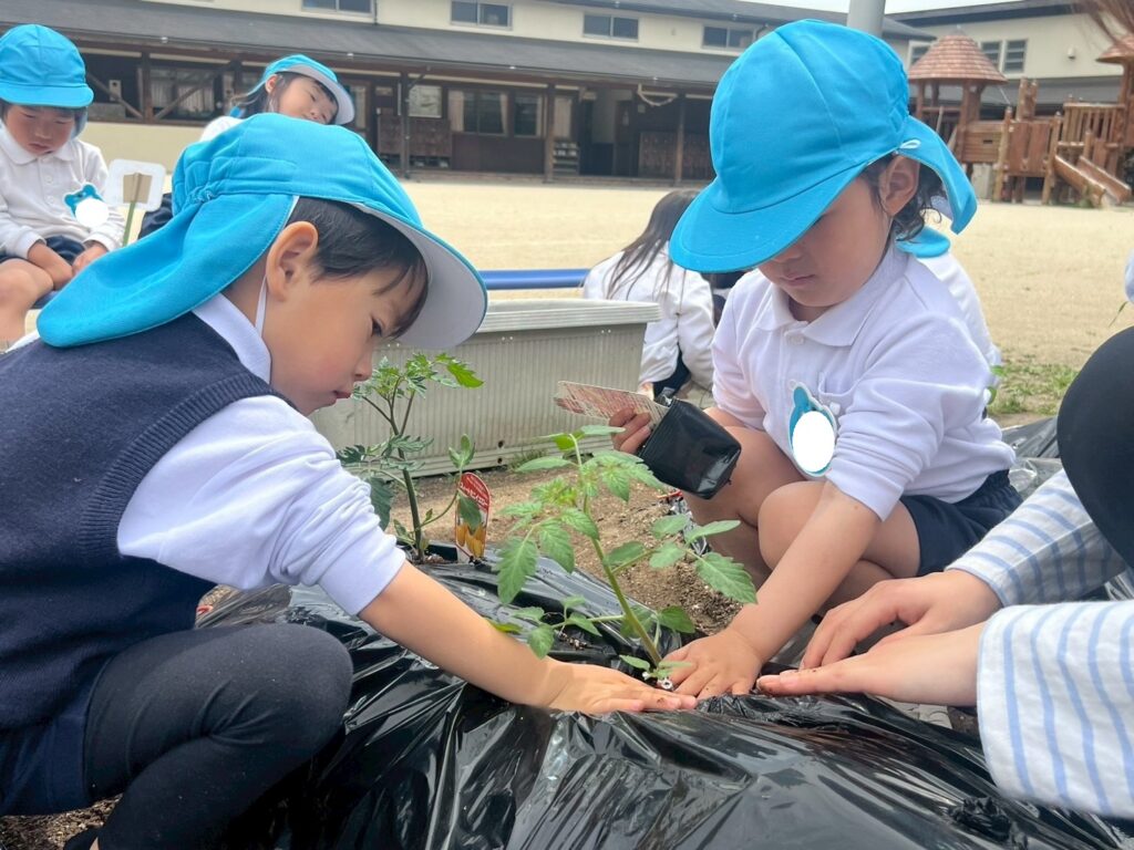 今日は過ごしやすい気温の中、年中組で楽しみにしていた夏野菜を植えました
