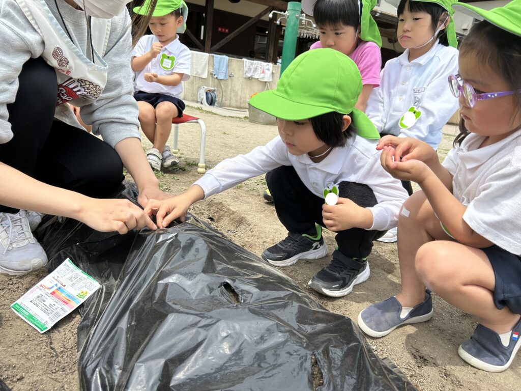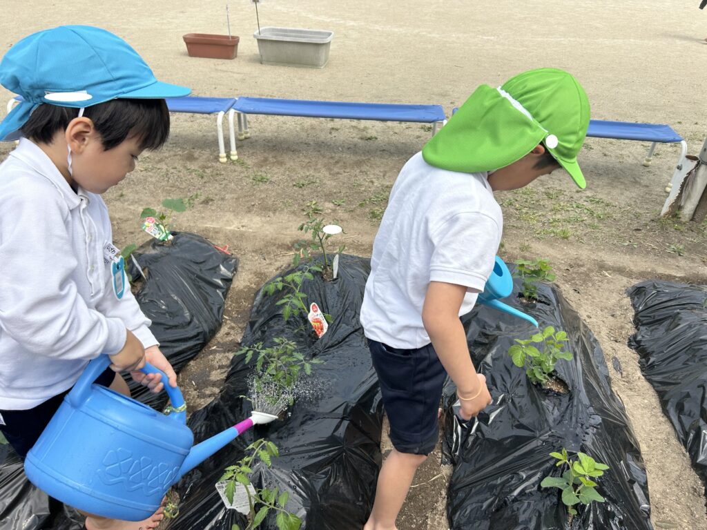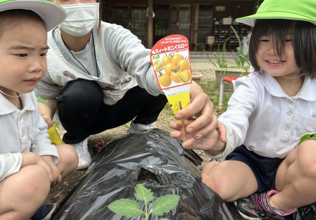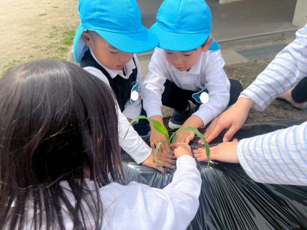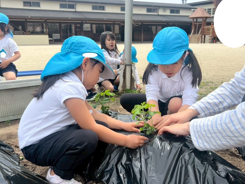 今日は過ごしやすい気温の中、年中組で楽しみにしていた夏野菜を植えました