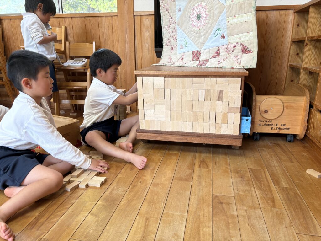 また自分たちで考えて積み木を並べたり、見立てたりと遊びをリードする姿も見られます。