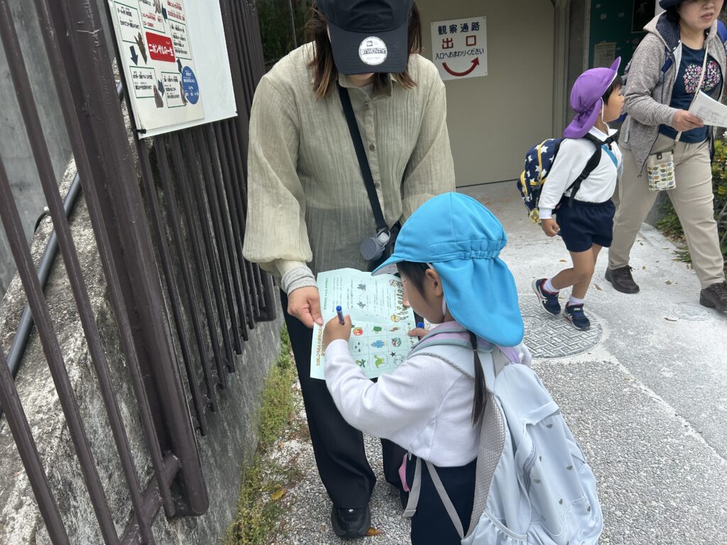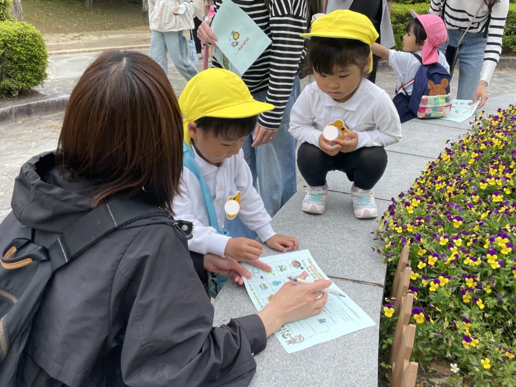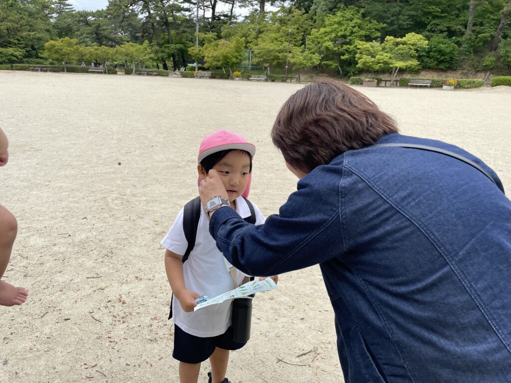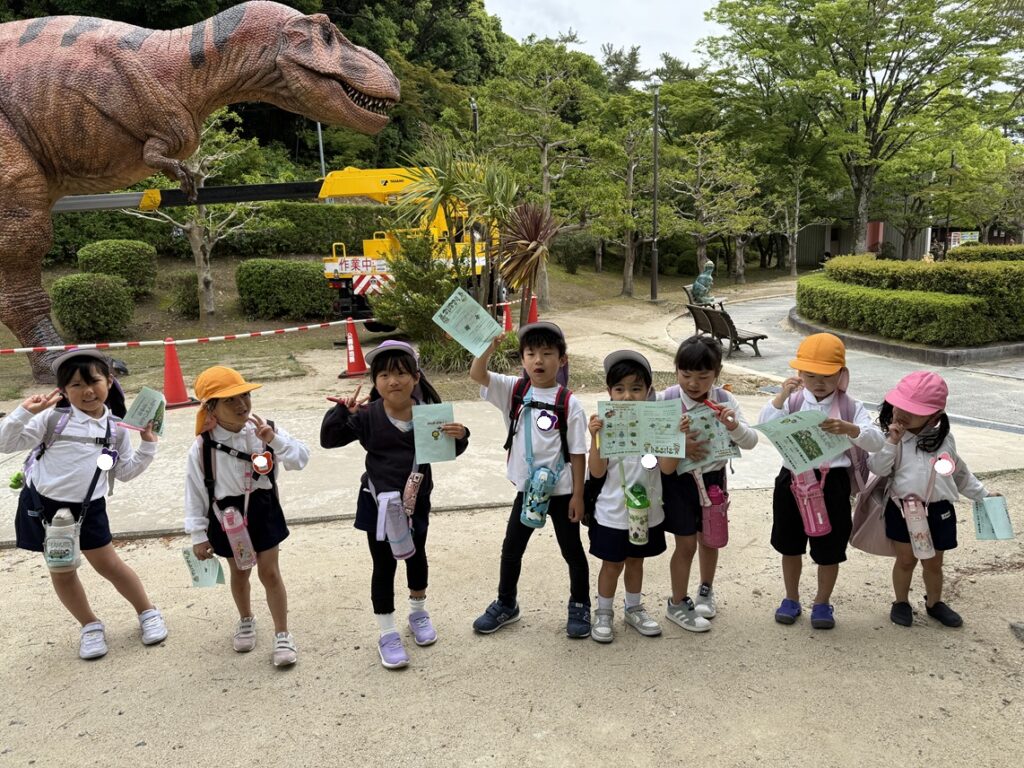 オリエンテーリングカードをもって、東公園を散策しました。ウサギや恐竜、フラミンゴ、虫などを見つけました。