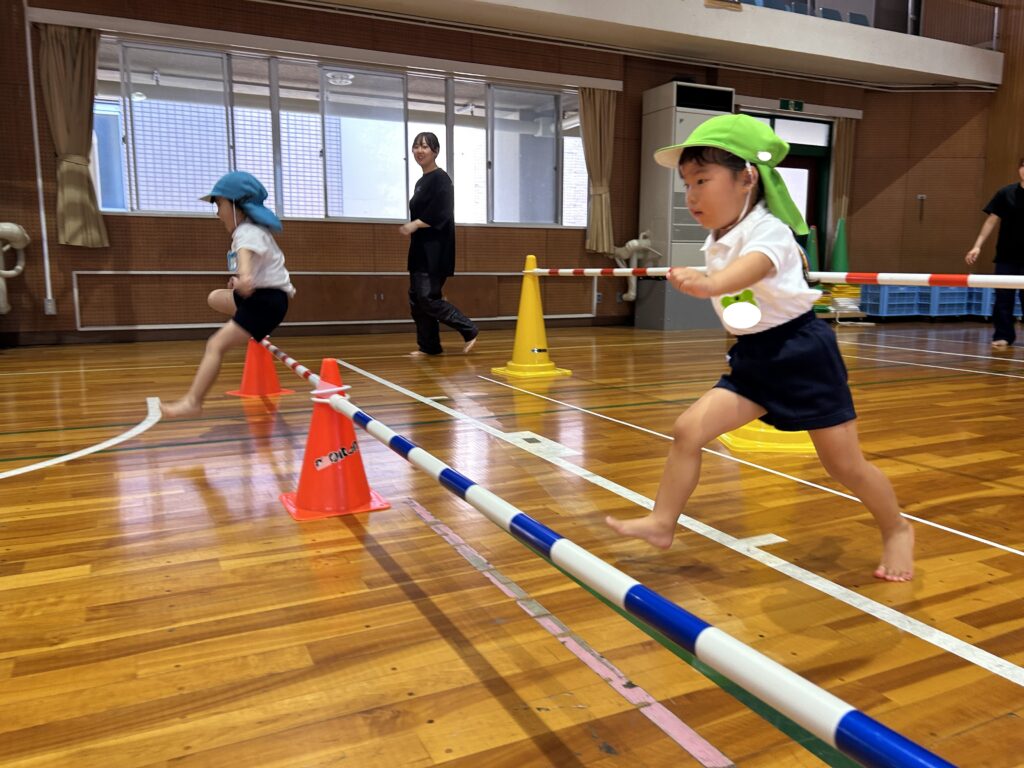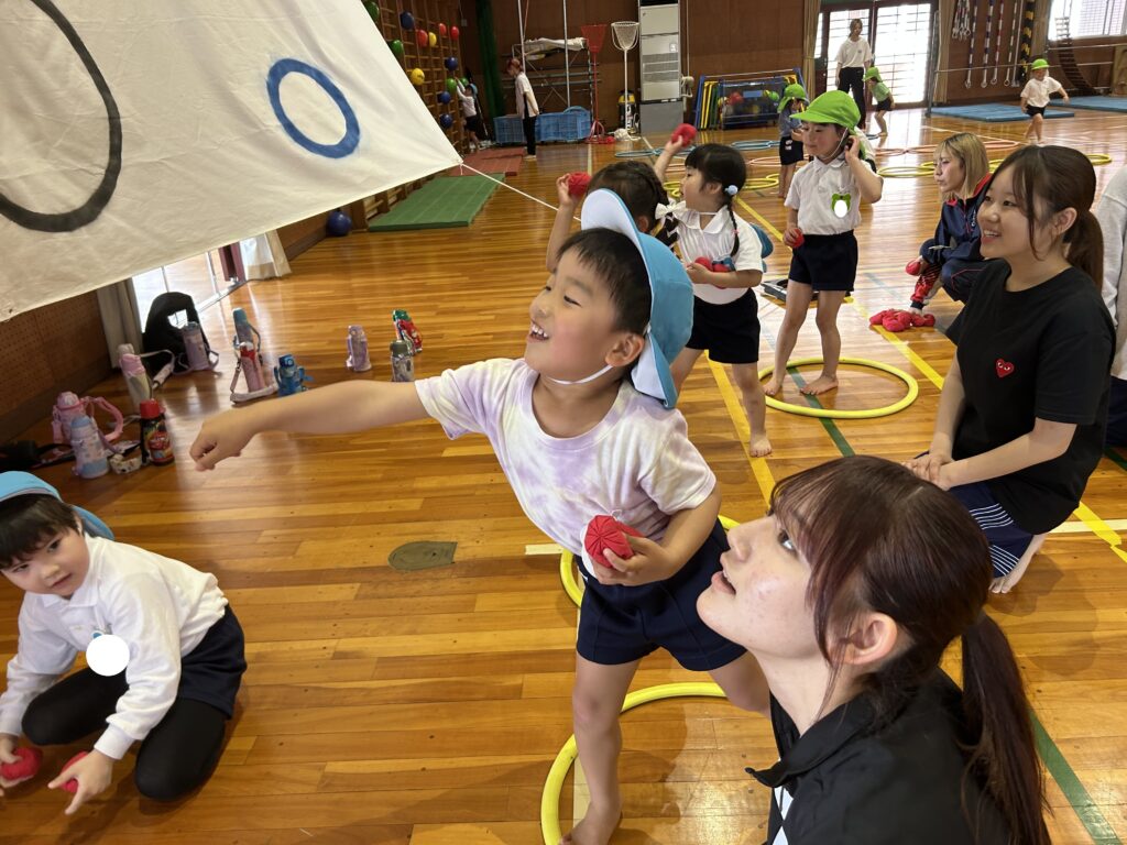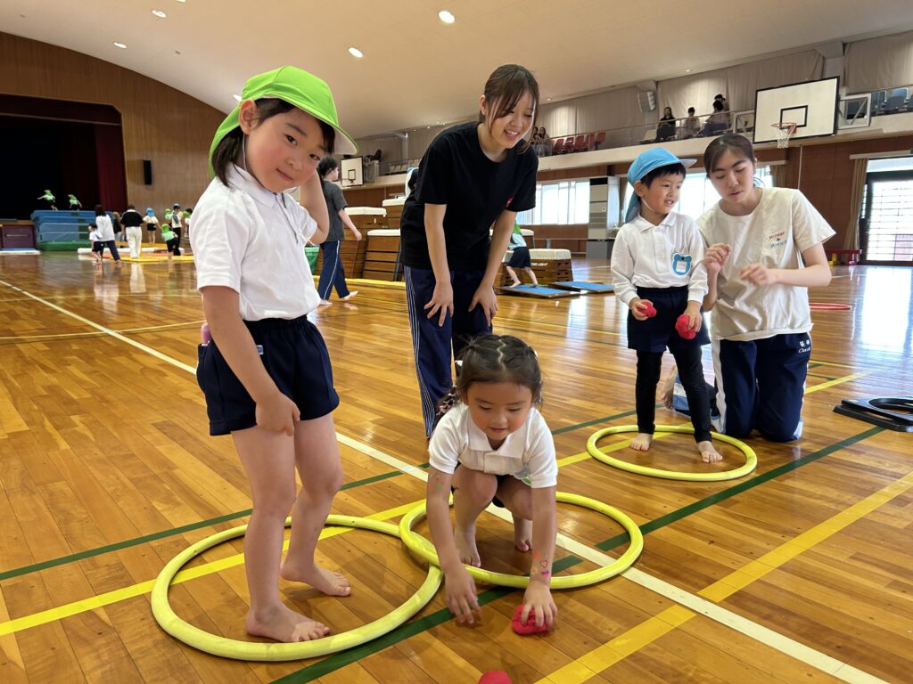 今日は、年中組になって初めて、岡崎女子大学・短期大学の運動遊びがありました!