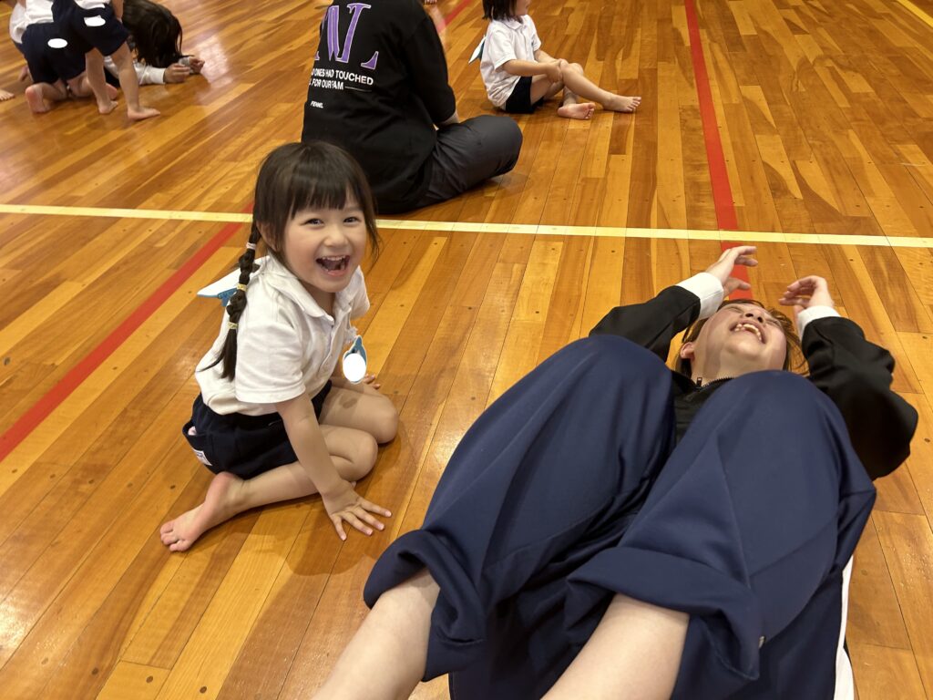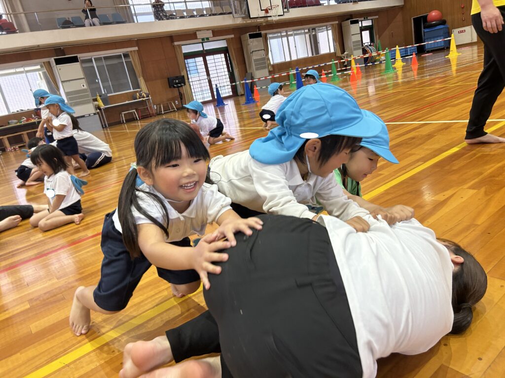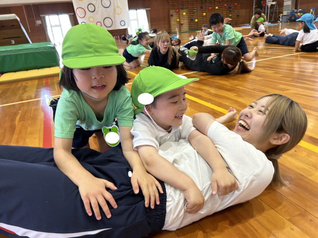 また、石やおせんべいになりきって、友達や学生のお姉さんをころころと転がしたり、ひっくり返したりするふれあい遊びも行いました!